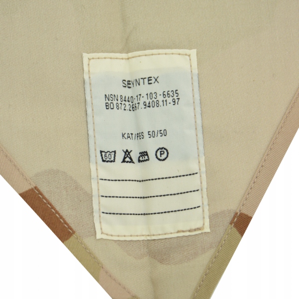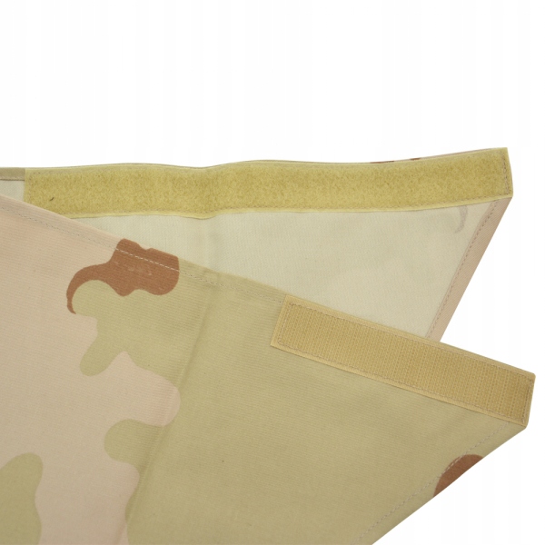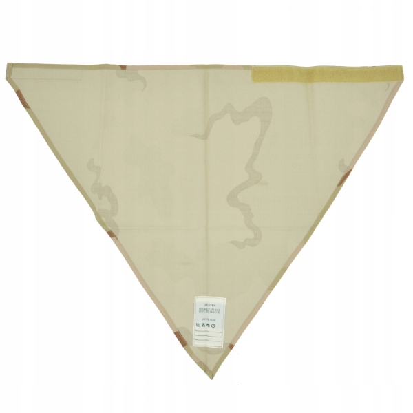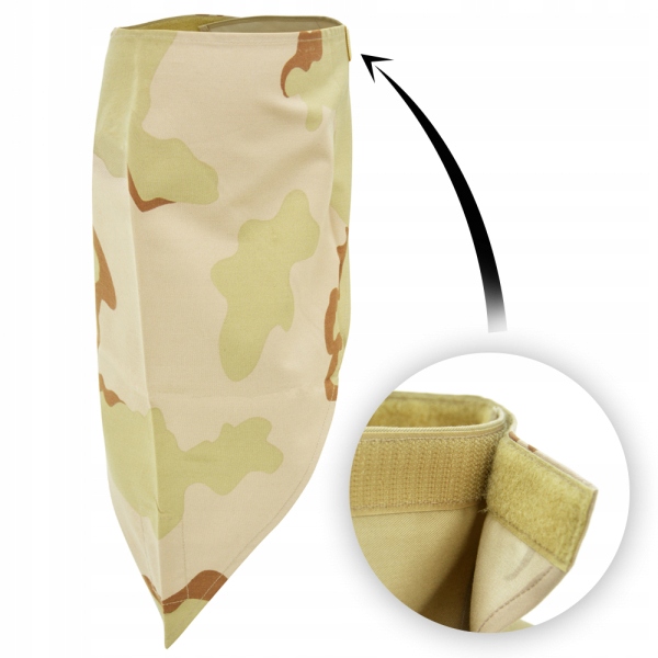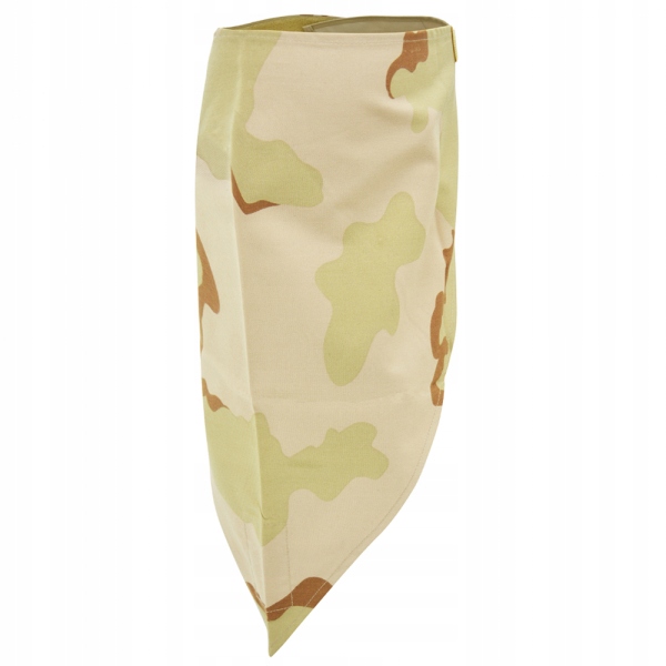 оригінальний трикутний шарф, отриманий з ресурсів голландських військ, виготовлених у 3-кольоровому пустельному камуфлязі. Виготовлений з високоякісного матеріалу з 50% бавовни, 50% поліестеру. захищає від важких погодних умов, таких як вітер, мороз, дощ або сонце. Довжина бічної обгортки навколо голови - 63 см.