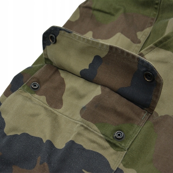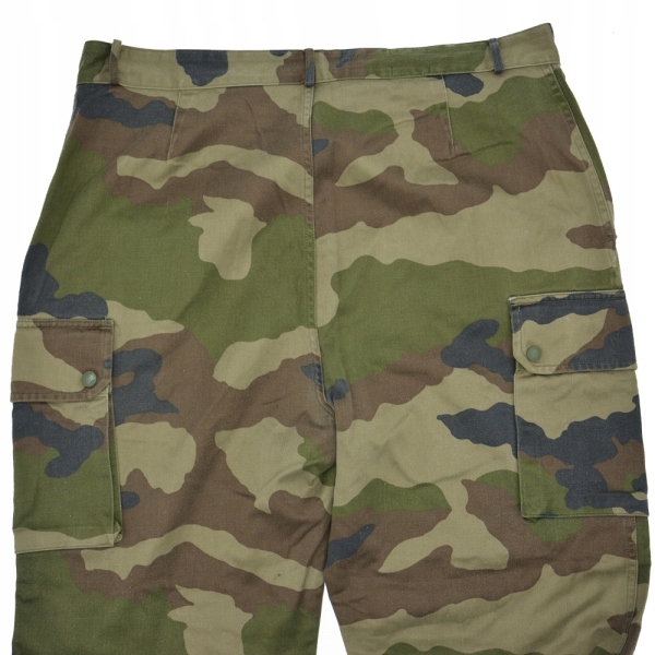оригінальні, штани французької армії та міліції закордонного легіону в розрізі F2. Штани, виготовлені в камуфляжі CCE. У них 4 кишені - 2 на стегнах і 2 на стегнах, прикріплених кнопками. На колінах вони мають арматуру матеріалу. Закріплений кнопкою. У нижній частині ніг є манжета (гумка).