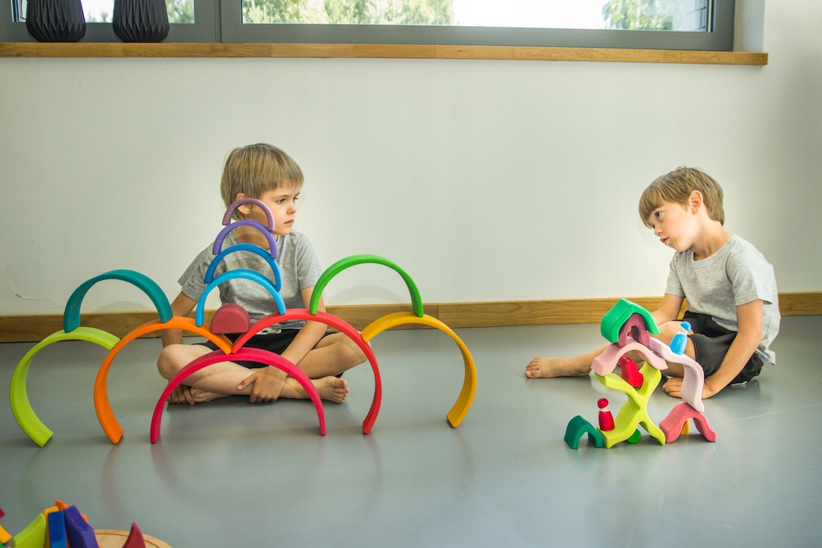 Форма форми нагадує веселку , але кольори, що відхиляються від природи, дають дітям більше свободи, називаючи те, що вони бачать. Для деяких, незважаючи на пастельні кольори, це все одно буде відображенням одного з найбільш магічних явищ у природі. Для інших арки стануть барвистими мостами, що з'єднують міські береги винайдених річок. Послідовно встановлені один за одним, вони створить довгий тунель для звивистих автомобілів або зовсім іншої реальності. І невеликі дизайнери, що характеризуються значним терпінням, принесуть у них незвичні конструкції. Луки - це також цікавий елемент, який диверсифікує задоволення з іншими блоками. Вони можуть стати стінами будинку, парканом, гойдаючим кріслом ... насправді, що буде створено з дуги пастеля Грімма, залежить лише від творчості дитини.
