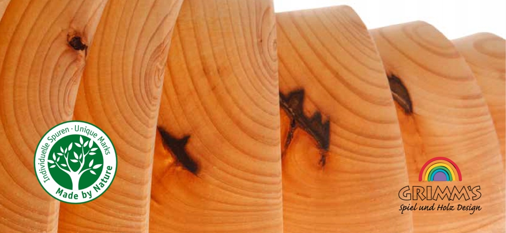іграшки дерев’яних Грімм , які виникають з 1978 року, - це простота, краса та універсальність та найвища якість. Дизайнери, черпаючи натхнення від педагогіки Монтессорі та Штейнера, формують деревину, щоб вона не втрачала нічого свого унікального істоти, стаючи іграшкою, яка дозволить розвиватися уява та творчість дітей. Іграшка, яка нічого не нав'язує, залишаючи дитину, щоб познайомитися зі світом у власному темпі, згідно з його власними здібностями та інтересами.