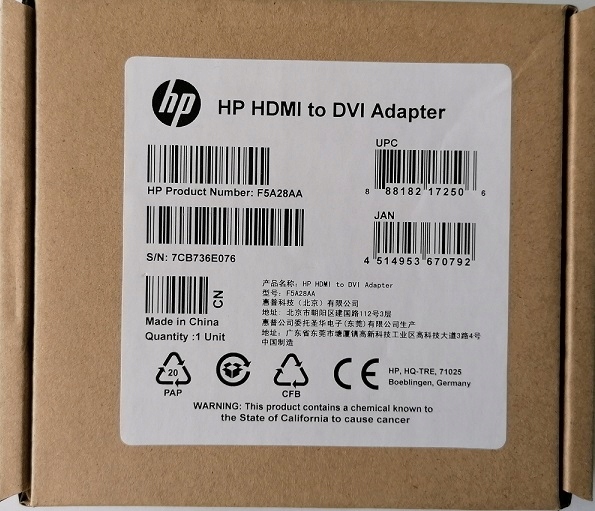 ОРИГІНАЛЬНИЙ АДАПТЕР HP HDMI НА DVI F5A28AA