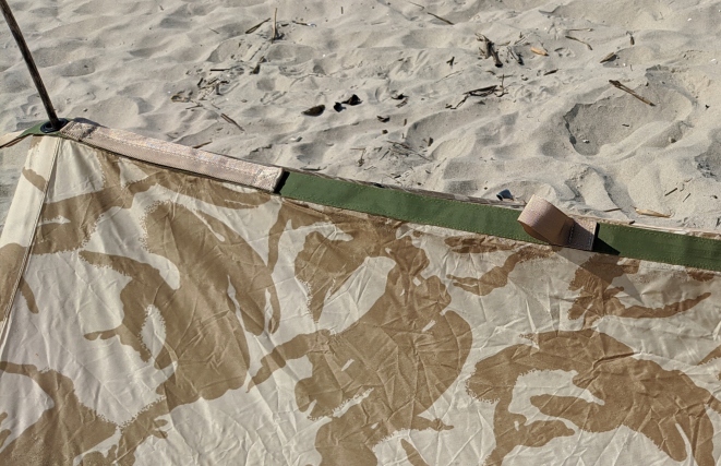 , але також як носилки, гамак тощо. Він має 9 ручок по бічних краях та середньому шва.