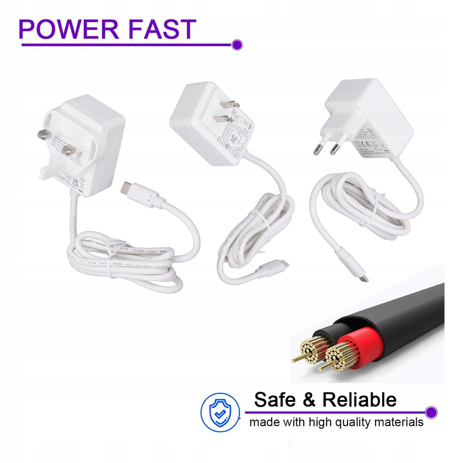 4. [Висока безпека], оснащена захистом від короткого замикання з перенапруженням та гіпертонією, зарядний пристрій забезпечує надійне джерело живлення, забезпечуючи додаткову безпеку для ваших пристроїв.