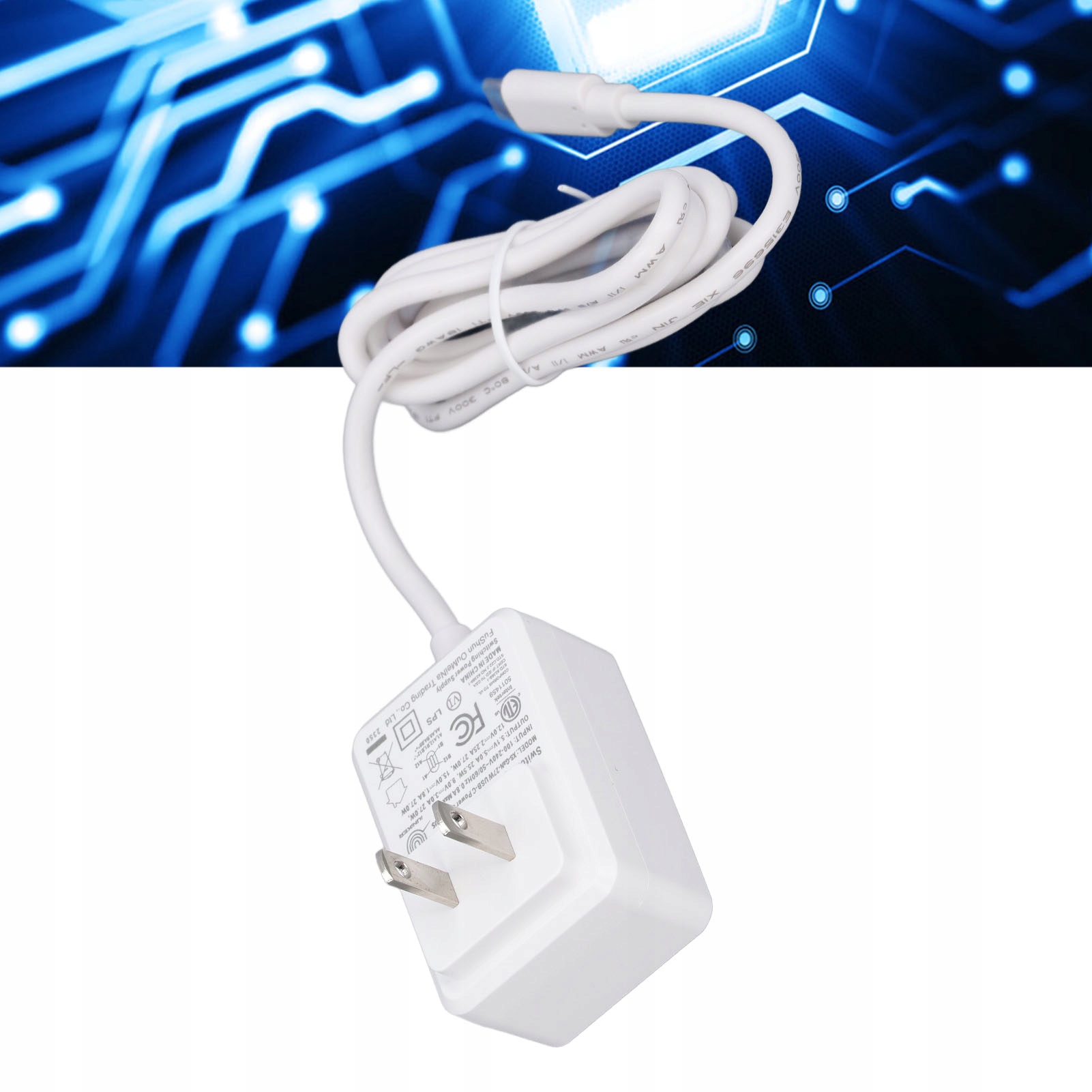 Вхід: 100-240 В змінного струму, 50 60 Гц 0,8 максимум; Роз'єм: USB C; Кабель: Прибл. 120 мм/4,72 дюйма 18awg