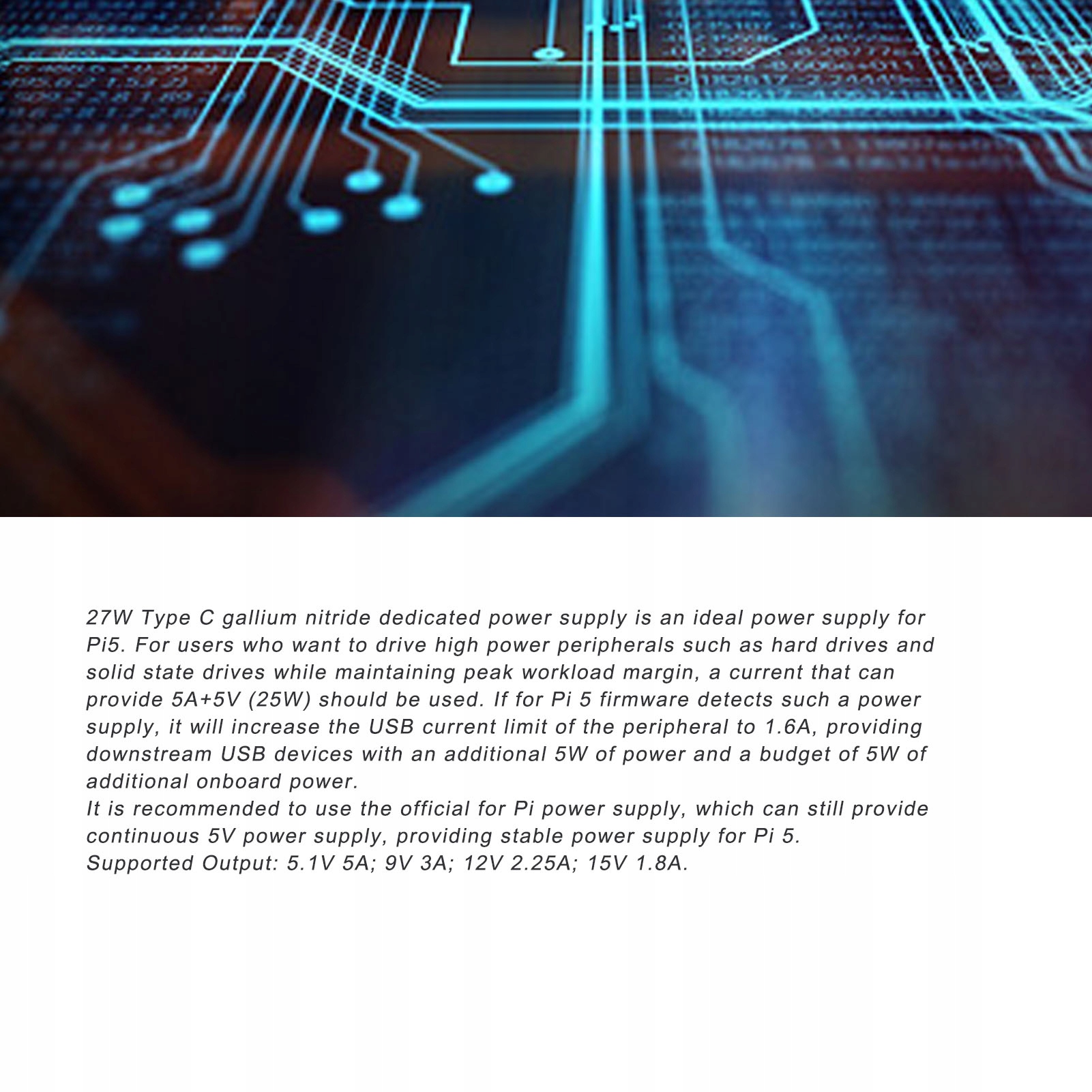 для PI 5 5.1 V 5 A 27 в інтерфейсі PD USB c. GAN Technology Poverte Poverte AC100-240 V