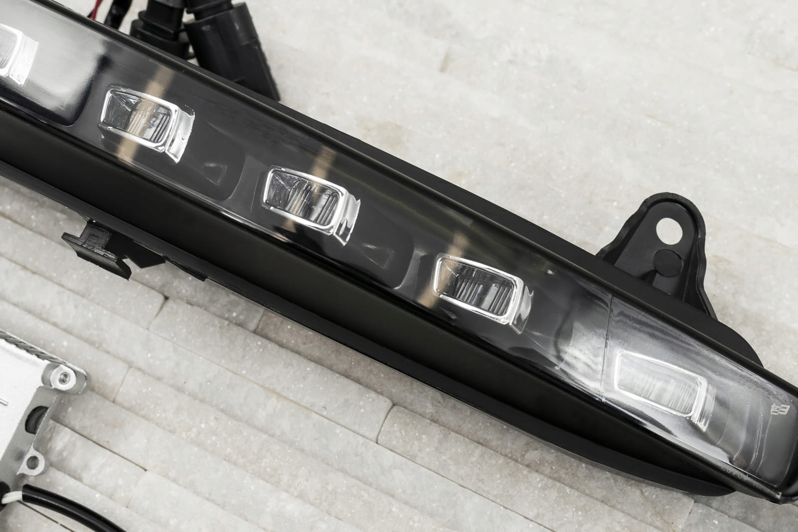 Набір тюнінгових денних ходових вогнів з функцією покажчиків повороту, призначений для моделі AUDI Q7 I (4L) 2005-2009 (версія до рестайлінгу). Ця модель дозволяє досягти стилістичного ефекту Audi Q7 W12 (V12).