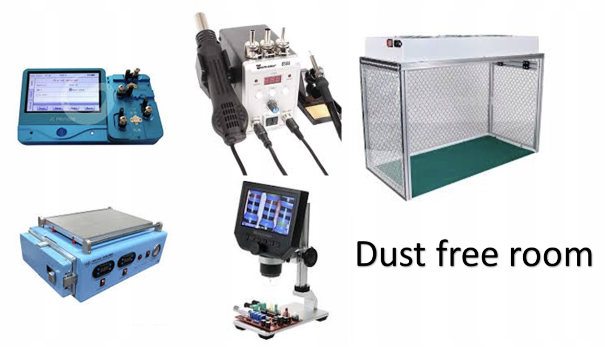 Усю послугу виконували в рукавичках, з використанням камери без пилу, мікроскопа, обігрівача екрана та корпусу, барокамери, клеїв, що розчиняють хімікати, тощо.