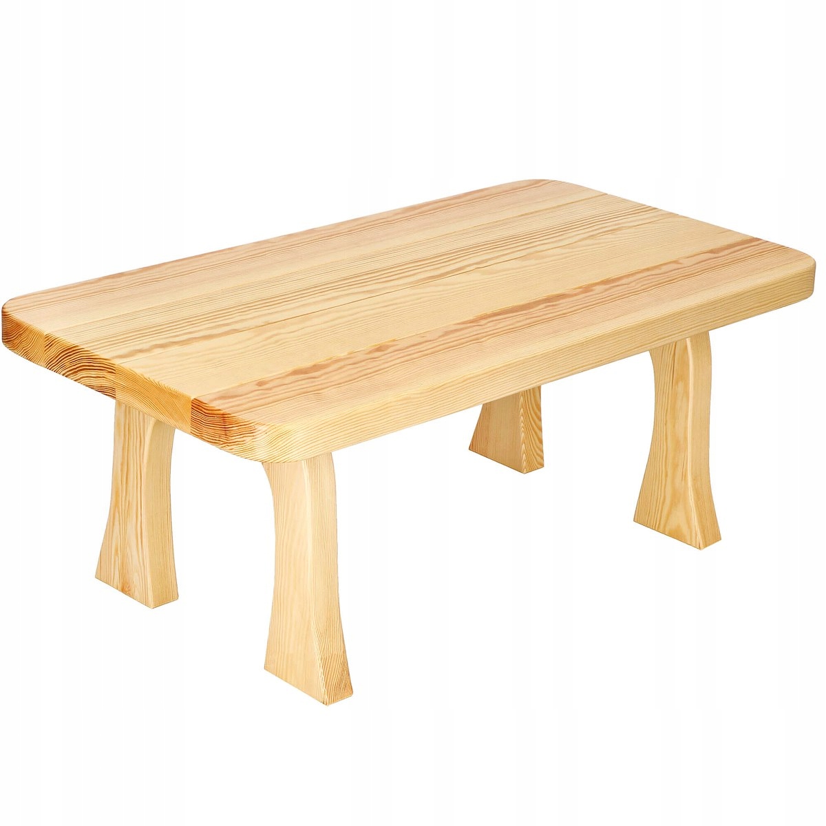 Виготовлена з дерева стільниця маєпрямокутну форму. Однак його краї заокруглені, що не тільки підвищує естетичну цінність столу, а й впливає на безпеку його використання. Стільниця товщиною 4 см впливає на її міцність, а широкі та масивні ніжки забезпечують належну стабілізацію.