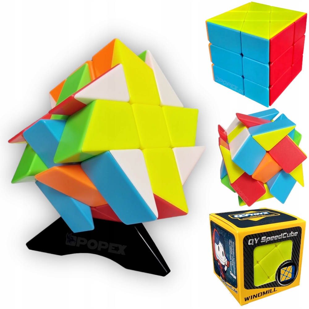 Куб вітряка — це одна з найскладніших версій класичних кубиків 3x3. Це куб зі змінною формою, що означає, що коли ви розв’язуєте його, його форма змінюється, і він не є кубом постійно. Це додаткова складність упорядкування, адже окрім кольорів, потрібно ще й форму.