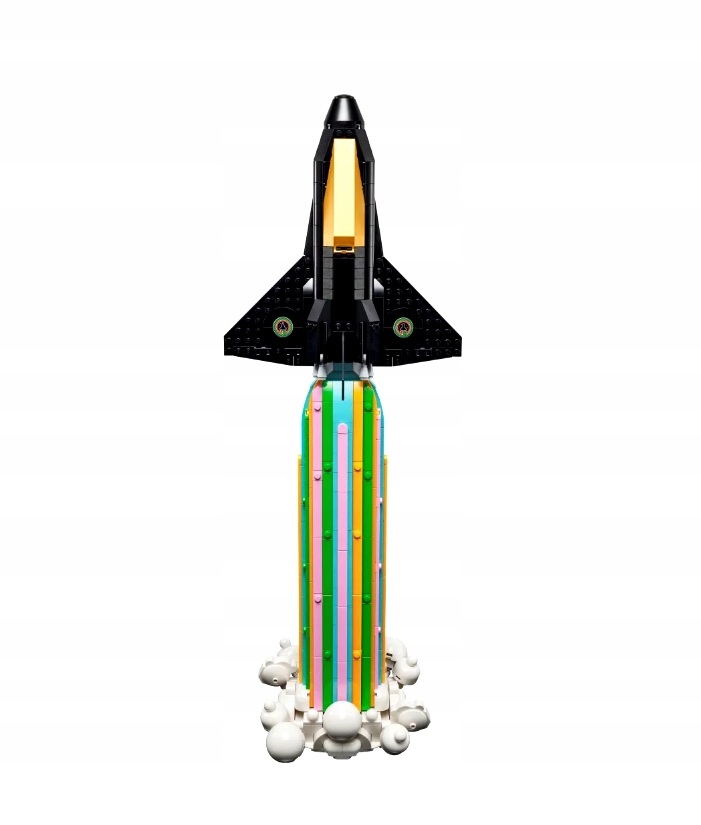 - Створюйте та демонструйте – модель космічного човника можна виставити на полицю в режимі запуску, прикріпивши до основи реактивного сліду
