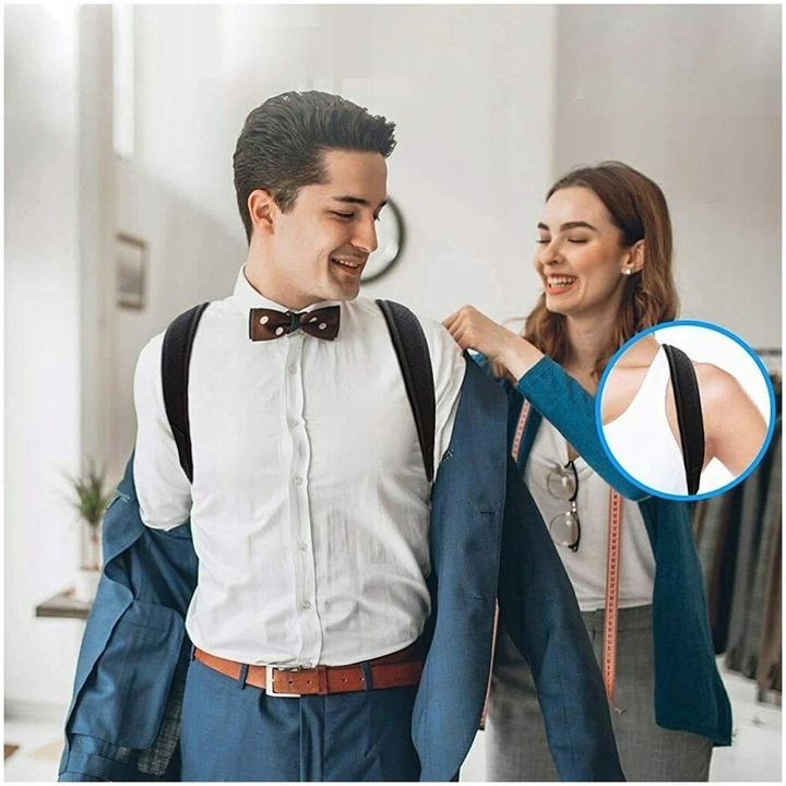 Ортопедичний коректор постави виготовлений з високоякісного матеріалу - піни та неопрену, ефективно відтягує плечі назад і є абсолютно безпечним. Він також має регульовані ремені, які дають змогу підлаштувати його відповідно до розмірів тіла.