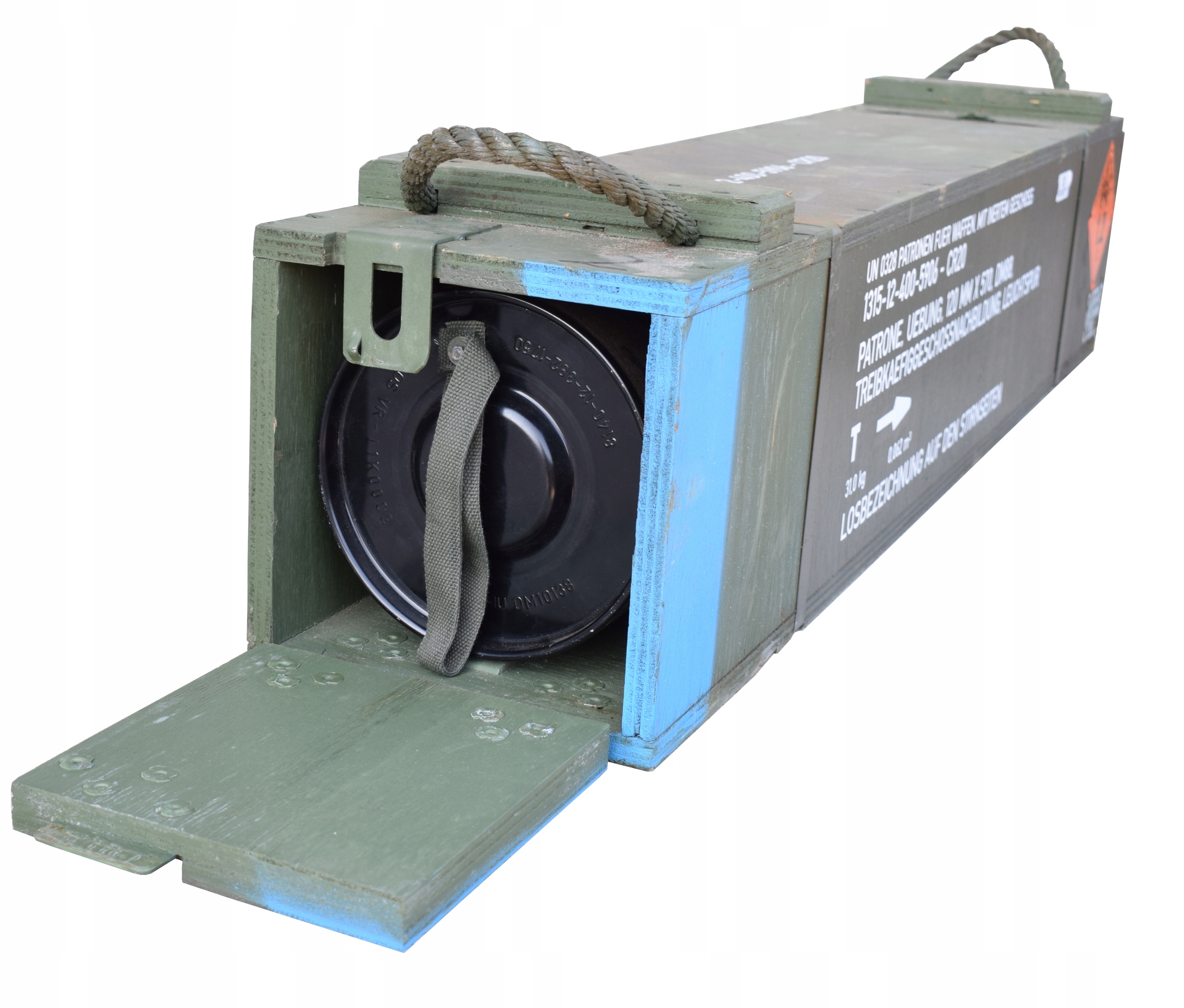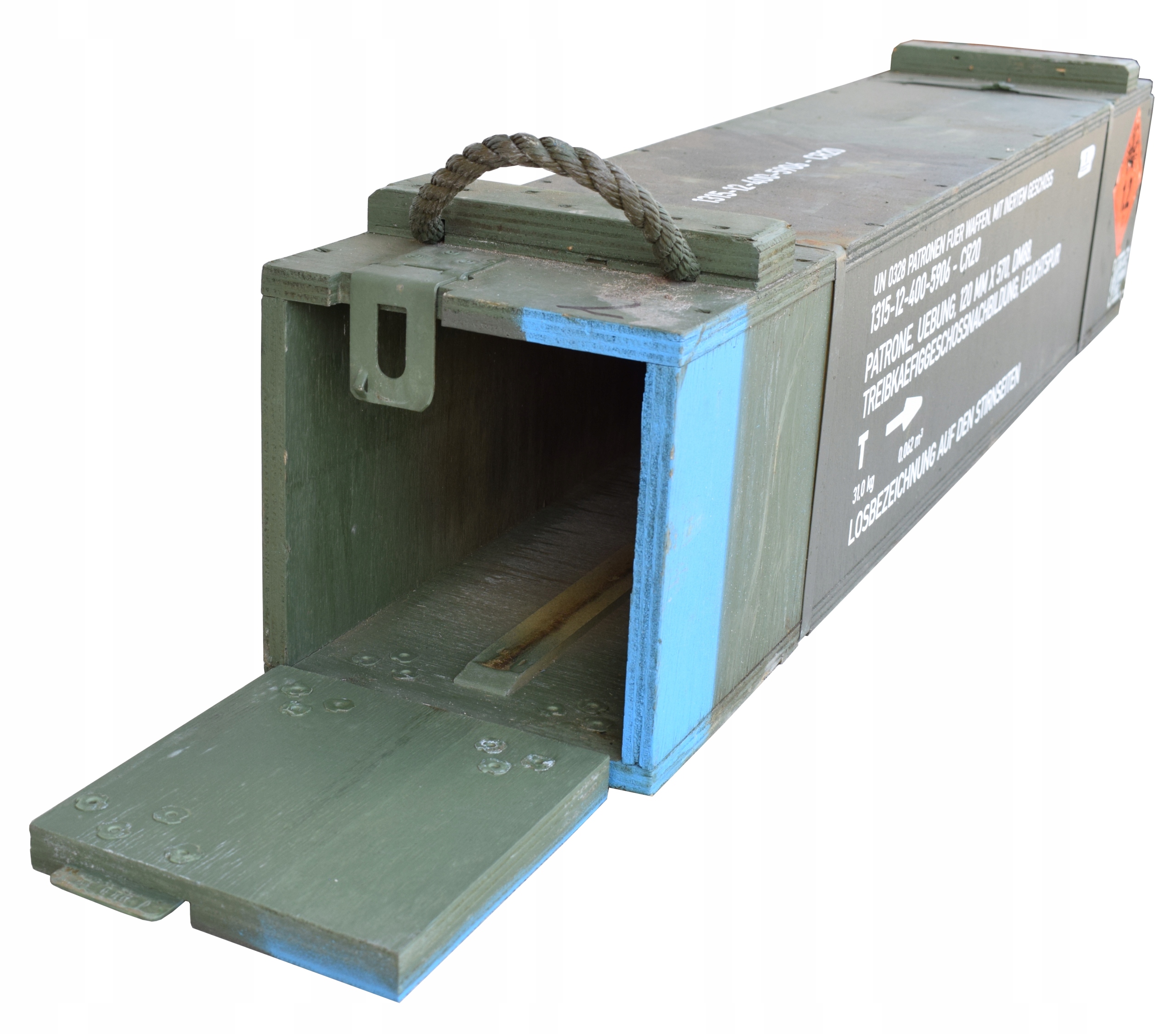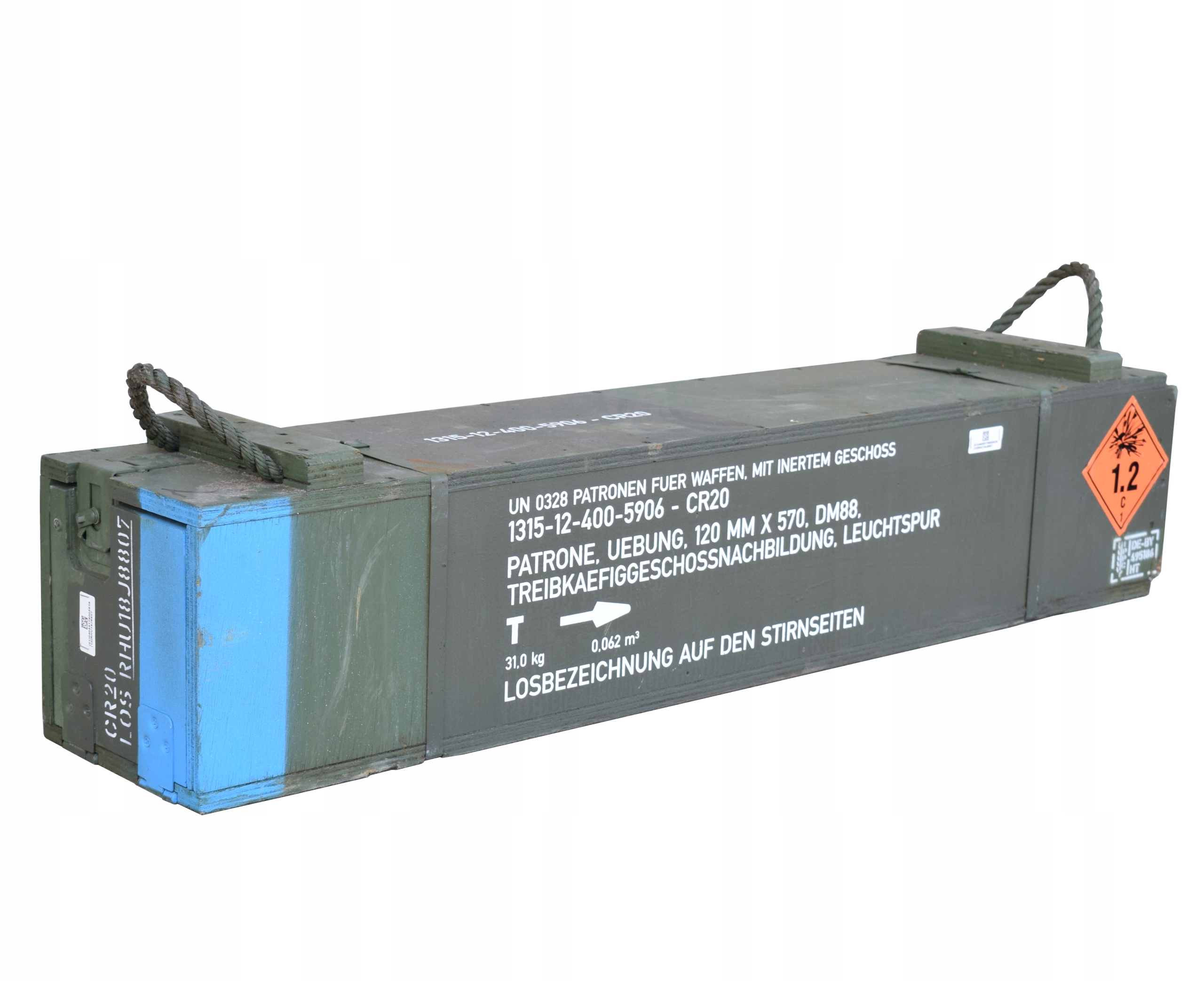Цільна дерев'яна військова скриня зеленого кольору. Оригінальний ящик для снарядів для танка Леопард.