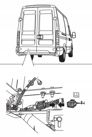 з фабричним перетворювачем (куб) на задньому бампері (див. Технічну фігуру з інструкцій).