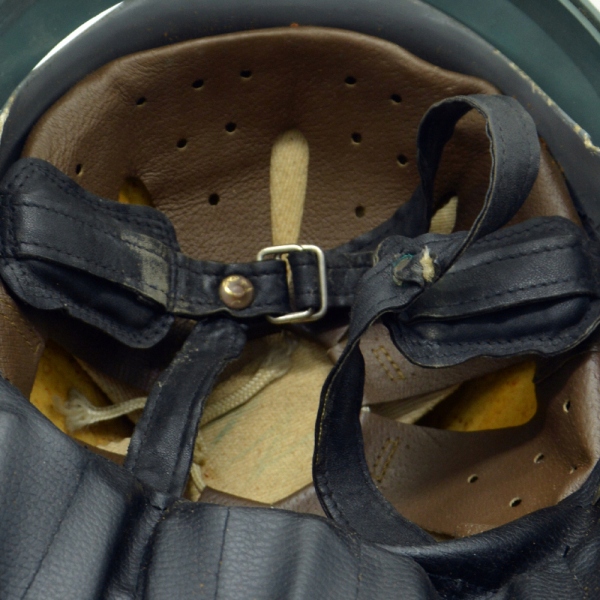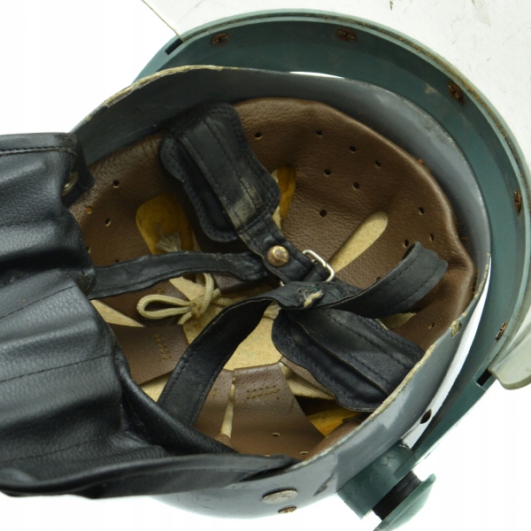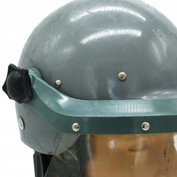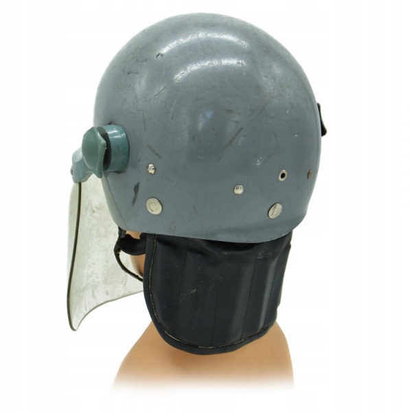 Оригінальний шолом/каска Громадянської міліції, модель. 83, виготовлений з композиту. Має шкіряні ремінці. Шолом оснащений підйомним козирком і захистом шиї, наповненим пробкою ззаду.
