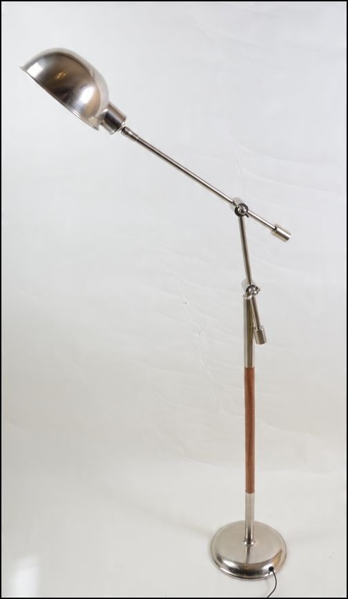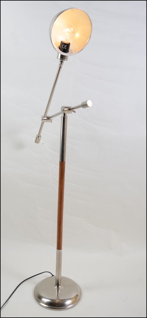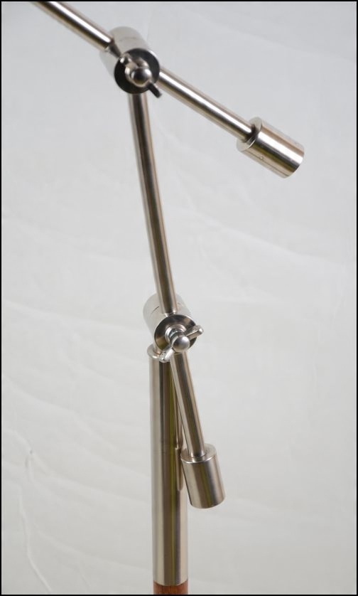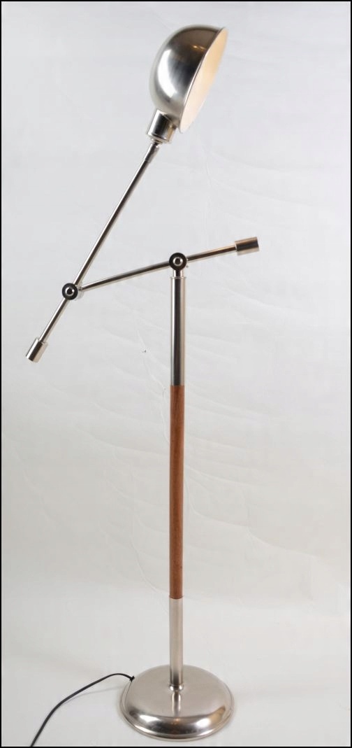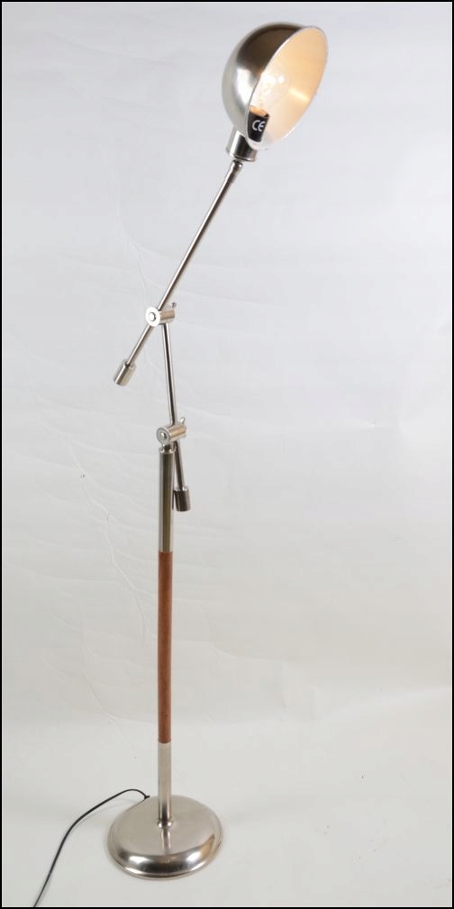 Предметом вашого спостереження є оригінальний і практичний торшер 1960-1970-х років з Іспанії. Всі металеві елементи виготовлені з металу сріблястого кольору. Крім того, виріб має вставки дерев'яних декоративних елементів. Світильник досягає максимальної висоти 150 см.
