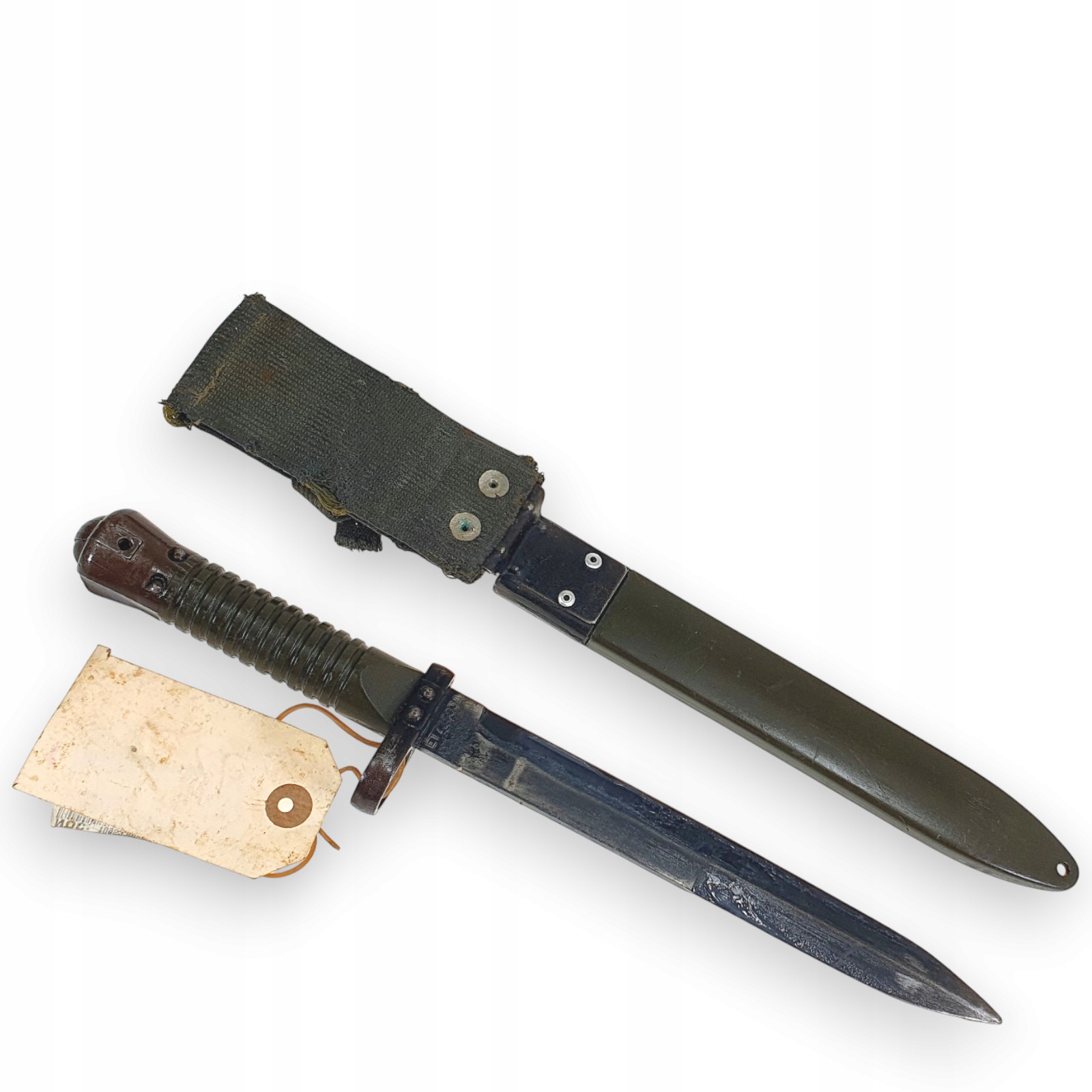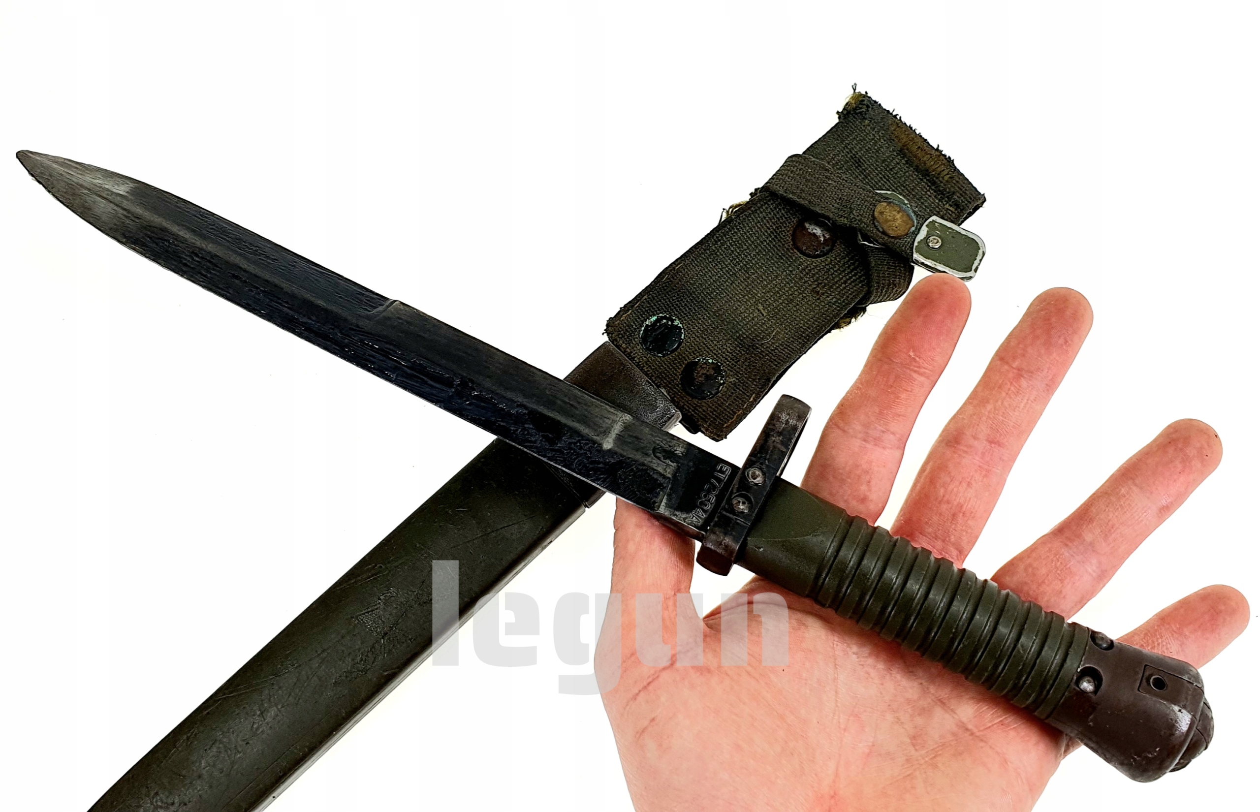 - Умова: Використовується. Байонет -засувка джем і не весняться, але ви все одно можете покласти його на зброю і триматися. Пластикова піхва зламана внизу. На фотографіях видно пропоновані багнети. Лезо в оригінальному жирі. Військовий демобіл.