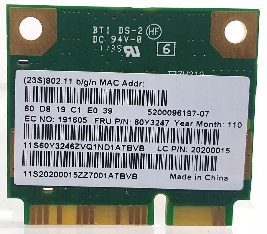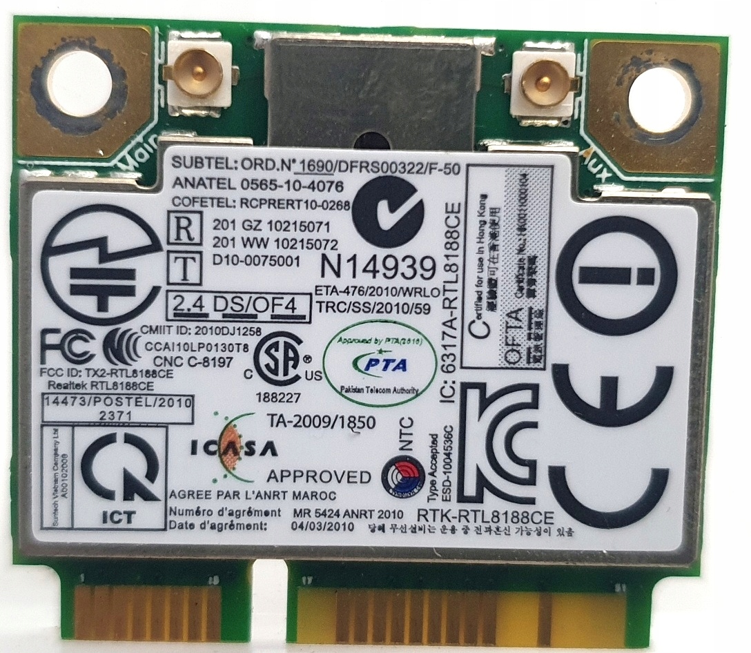 Оплачивая «Оригинальный Wi-Fi WiFi Wlan Realtek RTL8188CEB8», вы можете быть уверены, что данное изделие из каталога «Kарты miniPCI, miniPCIe» будет доставлено из Польши и проверено на целостность. В цене товара, указанной на сайте, учтена доставка из Польши. Внимание!!! Товары для Евросоюза, согласно законодательству стран Евросоюза, могут отличаться упаковкой или наполнением.