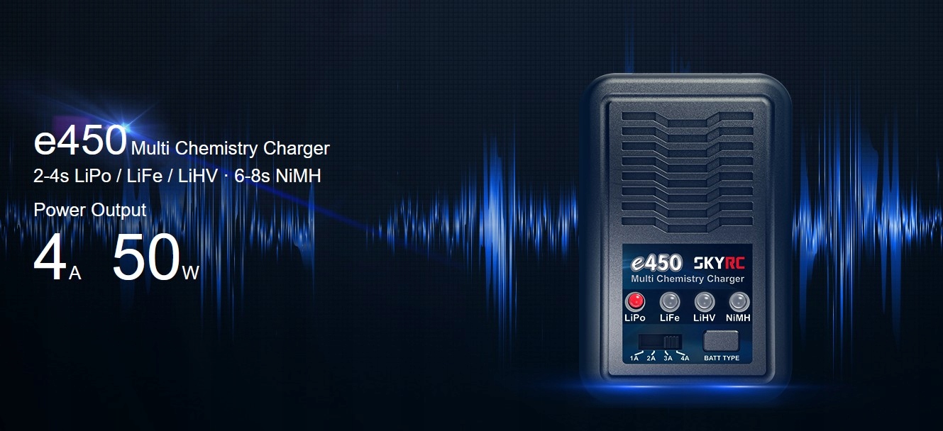 Оригінальний зарядний пристрій SkyRC e450 50W LiPo/LiFe/LiHV 4S, NiMH 8S 4A 230V AC