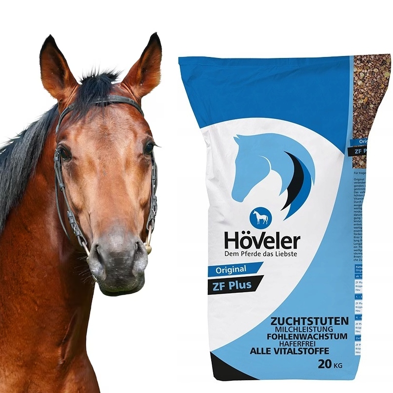 Оригінальний Höveler ZF Plus - це суміш, пристосована до мінливих потреб харчування жеребців та годуючої кобили. Продукт дорівнює збільшенню попиту на енергію, білки, мінерали та вітаміни в цей період. Завдяки використанню ретельно відібраних інгредієнтів, таких як високоякісні амінокислоти та кальцій, додаткові вітаміни, включаючи вітаміни Е та ß-каротину, кобилу та її жеребці, отримують усі необхідні поживні речовини. Оригінальний Höveler ZF Plus забезпечує належний розвиток жеребців та покращення стану кобили. Продукт багатий високоякісними мінералами, що забезпечує оптимальний розвиток кісткової системи ненародженої жеребці. Багаторічний досвід виробництва корму для коней дозволив нам розробити продукт з оптимальним вмістом білка та з широким спектром необхідних амінокислот, щоб забезпечити вам успішне розведення. Погана соя, патока, ячмінь, лляне масло, горохові пластівці, карбонат кальцію, односередовища, хлорид натрію, оксид магнію