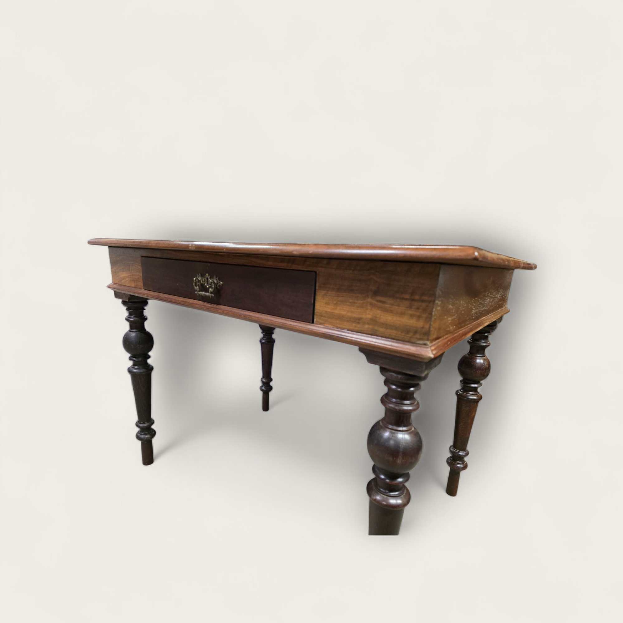 Стіл горіховий в стилі еклектика, з масивною стільницею з масиву горіхового дерева. Меблі потребують візуального оновлення, але конструктивно стабільні та міцні.