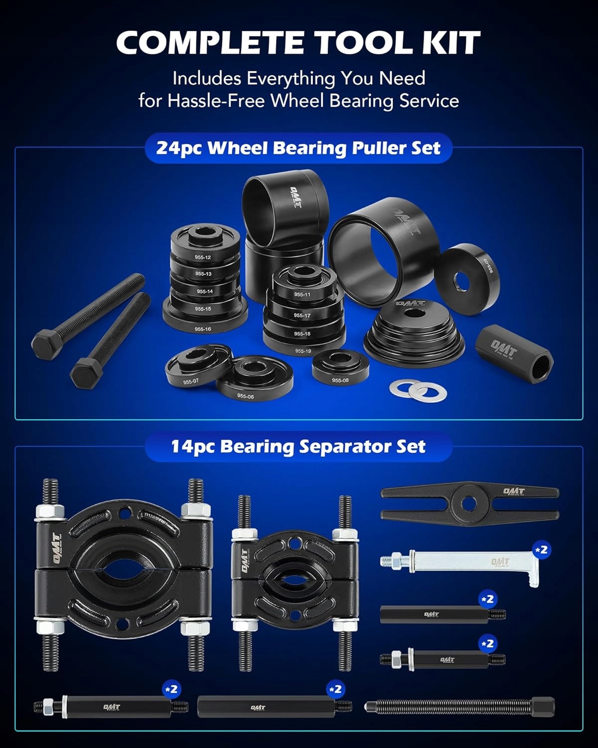 - Ефективне рішення для підшипників: цей комплексний набір інструментів для підшипників коліс від Orion Motor Tech ідеально підходить для демонтажу малих або великих підшипників на осях втулки передніх і задніх коліс, а також шестерень, шківів і маховиків.