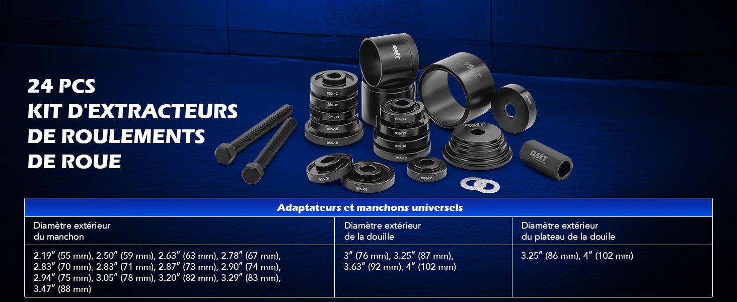 - Широка сумісність: наш комплект знімачів підшипників містить різноманітні втулки та гнізда найпопулярніших розмірів, які підходять для більшості транспортних засобів з переднім приводом, квадроциклів і пікапів.