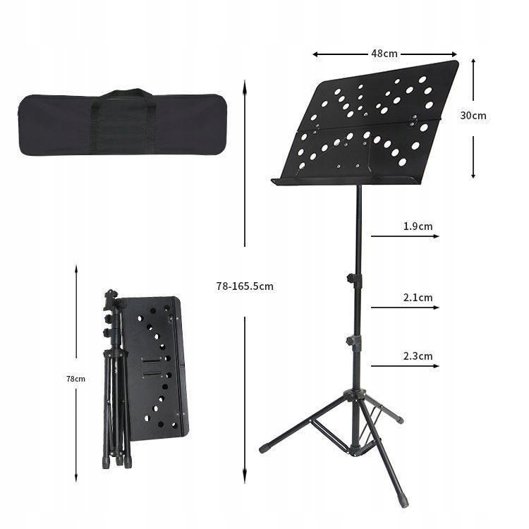 Стіл дуже легко регулюється за допомогою гвинтів. Діапазон висоти становить 78 - 165,5 см, а верхню частину можна налаштувати під будь-який зручний кут огляду відповідно до ваших потреб, що робить однаково комфортним читання музики сидячи або стоячи.