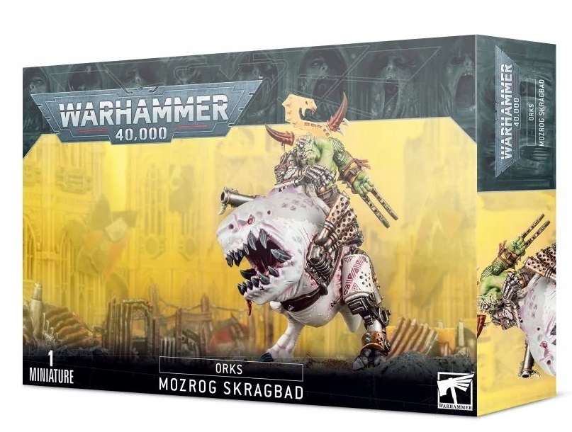 Цей багатокомпонентний пластиковий набір складається з 43 компонентів, за допомогою яких ви можете створити персонажа Beast Snagga Orks Mozrog Skragbad і його squigosaur, Big Chompa. Крім того, цей набір можна зібрати як Beastboss на Squigosaur. Він поставляється з однією круглою основою Citadel 80 мм. Ця мініатюра постачається незафарбованою та потребує складання – ми рекомендуємо використовувати клей для пластику Citadel та фарби Citadel.