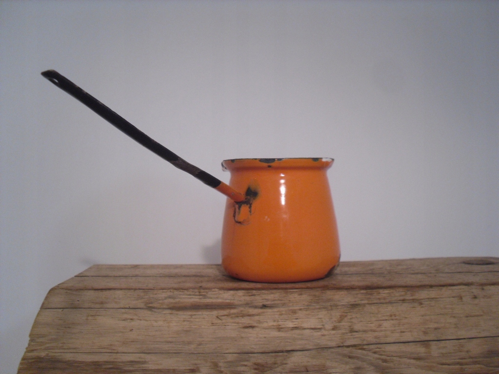 Ласкаво просимо на мій аукціон. На аукціонах я зазвичай пропоную вам предмети з періоду PRL. На цьому аукціоні я пропоную оригінальне старе емальоване молоко з металевою ручкою. Горщик, що зберігається в середньому стані, емальовій кришці, Рига. Горщик в помаранчевому кольорі та додавання чорного кольору на білій ручці всередині. Очищене молоком. 6 см підпис на дні. Все видно на знімках. /Див. Фотографії/