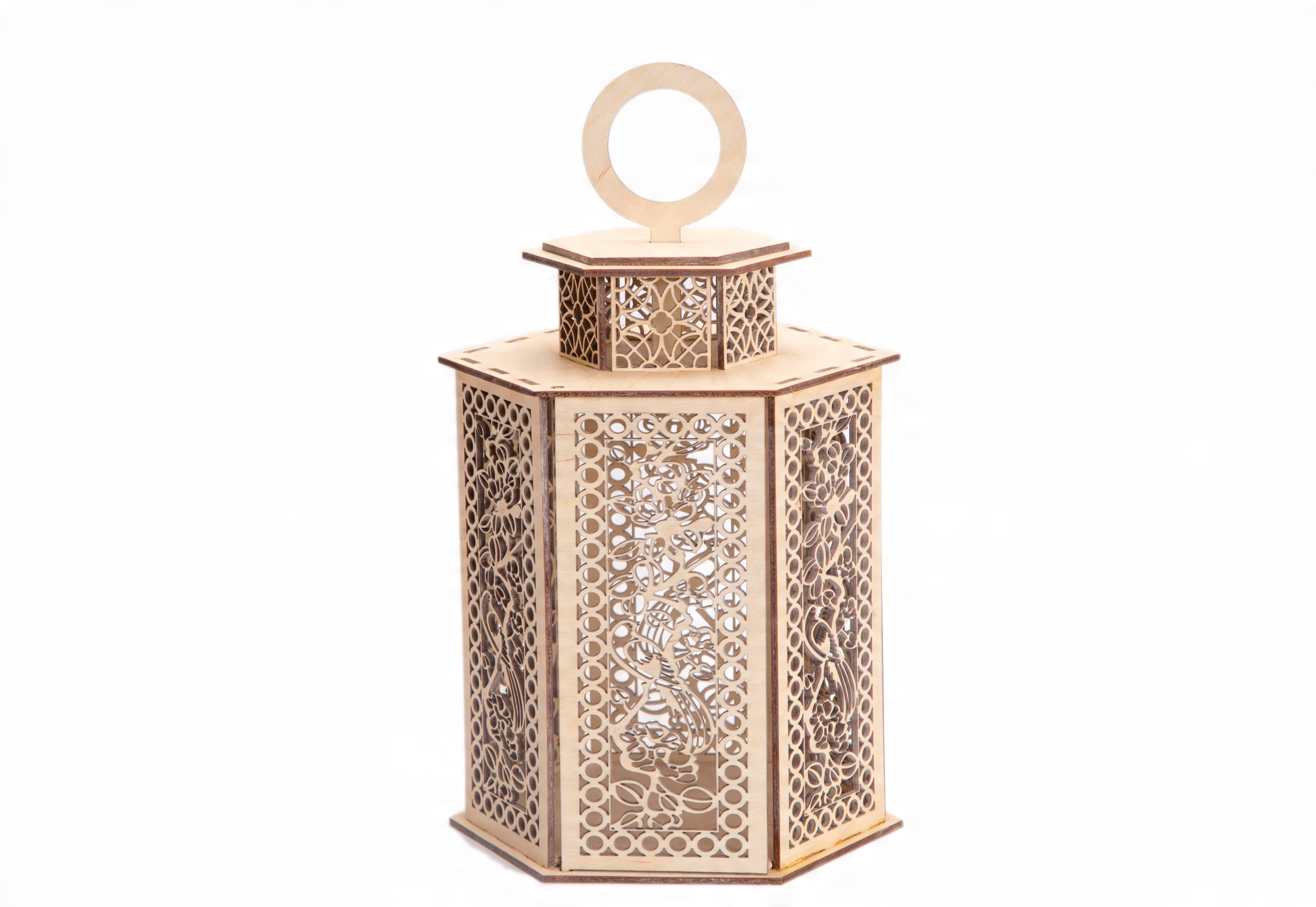 Шестираменний ліхтар, виготовлений методом лазерного різання на фанері.