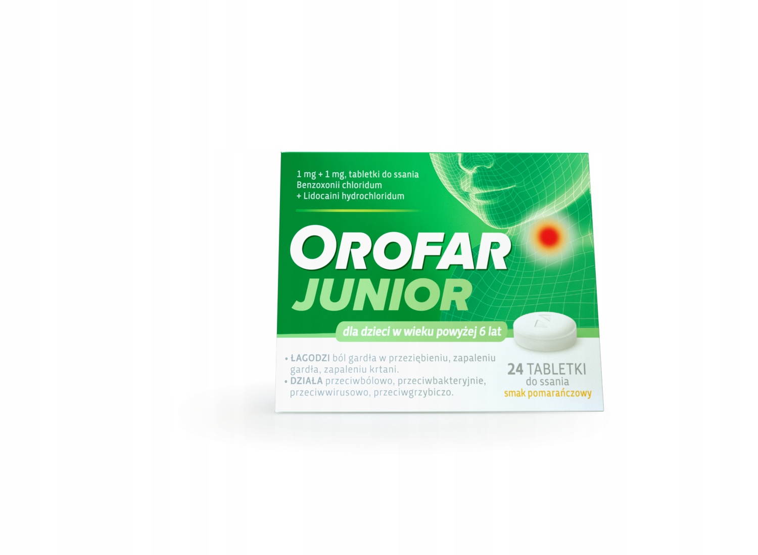- Діючі речовини: бензоксоній хлорид і лідокаїну гідрохлорид. Одна таблетка Орофар Юніор містить 1 мг бензоксонію хлориду + 1 мг лідокаїну гідрохлориду - допоміжні речовини: сорбітол, целюлоза мікрокристалічна, макрогол 6000, крохмаль кукурудзяний, натрію сахарин, натрію хлорид, кислоти лимонної моногідрат, ароматизатор апельсиновий, магнесустеарат