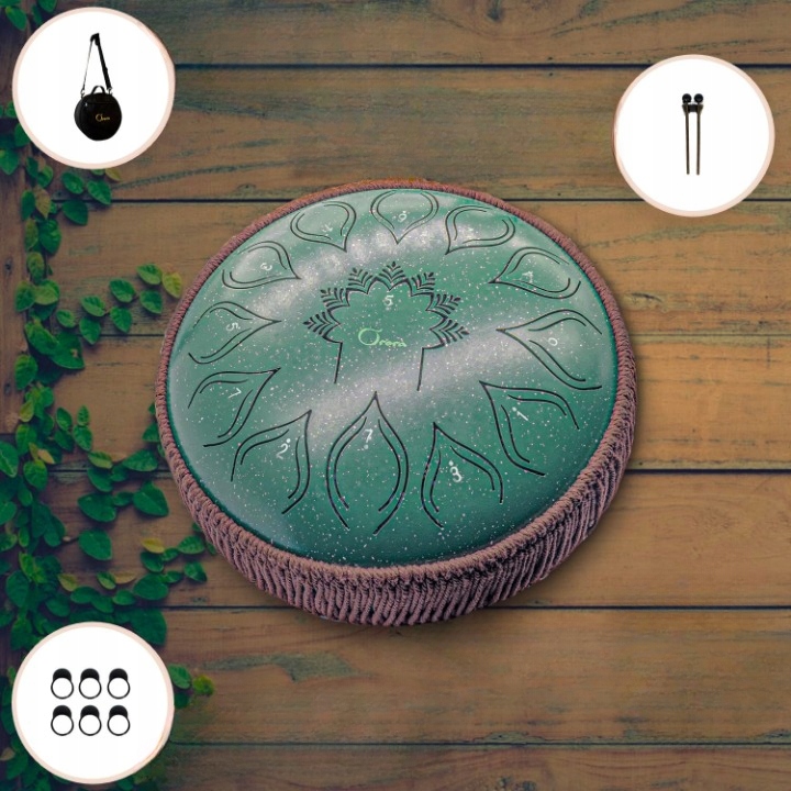 Відкрийте для звуку завдяки ora grume grum - сталевий барабанний барабан з діаметром 12 дюймів та 13 -ти рекламу. Це унікальний ударний інструмент, натхненний Handpan, створений для розслаблення, медитації та гри з музикою - незалежно від віку та рівня просування.