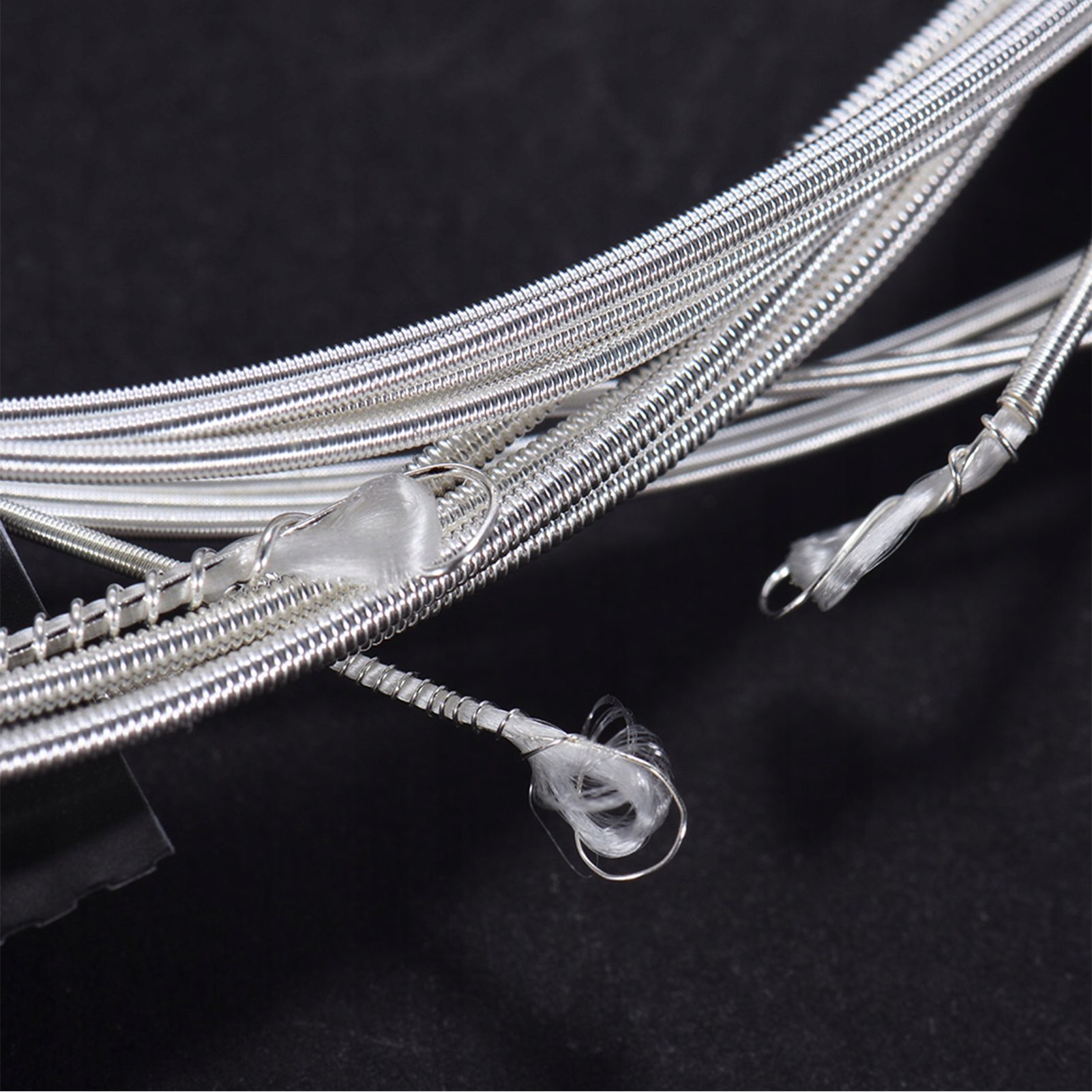 - Перший, 2. і 3. Струни беруть високоякісний нейлон, з довгим життям. З високоякісного нейлонового ядра, підірваного срібним пораненням, з високим глянсовим виглядом.