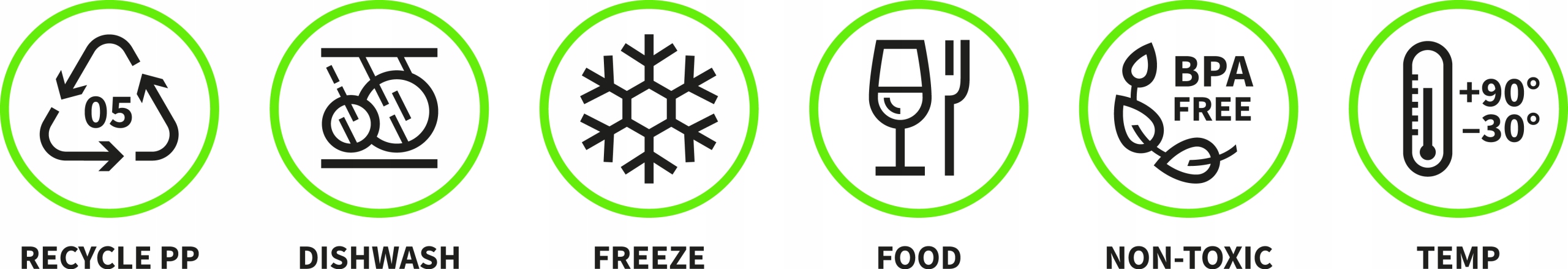 Контейнери витримують температури від -30°C до +90°C, що також дозволяє нам заморожувати продукти