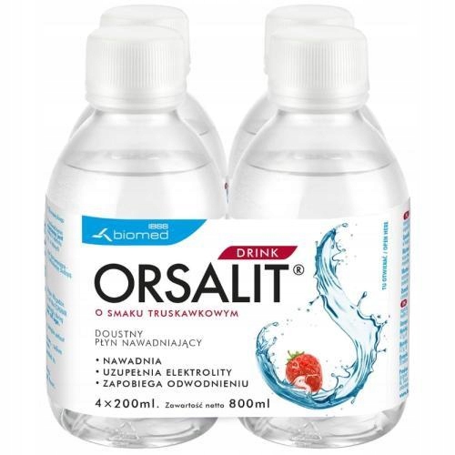 ОРСАЛІТ ДРИНК - ЗВОЛОЖУЮЧА РІДИНА / СМАК ПОЛУНИЦІ / 4х200мл/ ЕЛЕКТРОЛІТИ