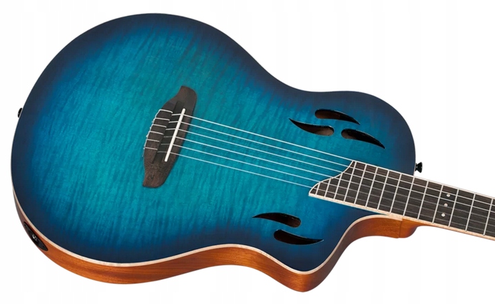 Ortega RTPDLX-FMA TourPlayer DeLuxe — це електрокласична гітара, що характеризується не тільки унікальним дизайном, але й складним і благородним звучанням. Це інструмент, розроблений професіоналами для професіоналів, який пропонує безпрецедентний комфорт гри, відмінну якість матеріалів і нюансований звук. Виготовлений із комбінації клену та окоуме, він забезпечує чудову міцність і надає звуку теплоту та динаміку.