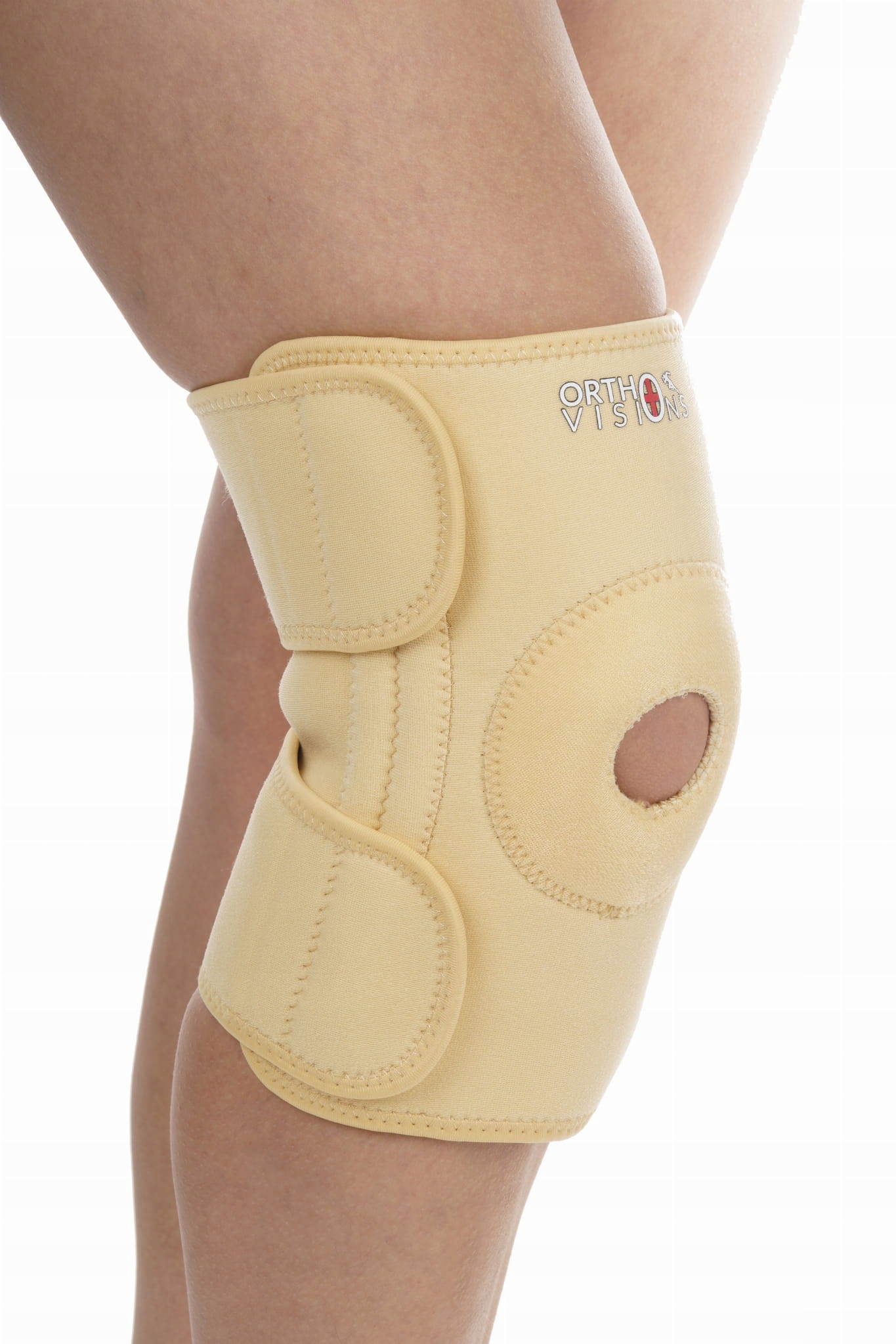 Неопреновий стабілізатор з відкритим дизайном і 3 застібками-липучками. Крім того, він має дві лямки по окружності, які застібаються на липучку. П'ять незалежних застібок дозволяють швидко регулювати стиснення та накладення та підвищують комфорт використання. Наколінник має 2 еластичні пружинні кісточки зліва та справа. Кісточки дозволяють підтримувати бічну структуру без обгортання матеріалу під час руху колінного суглоба. Передня частина має отвір підколінника з вшитим силіконовим кільцем. Отвір наколінника з силіконовою вставкою утримує стабілізатор у правильному положенні, а силікон поглинає удари та вібрацію. Конструкція виготовлена з неопрену, який має зігріваючі властивості, покращує кровообіг, прискорює метаболізм і відновлення.