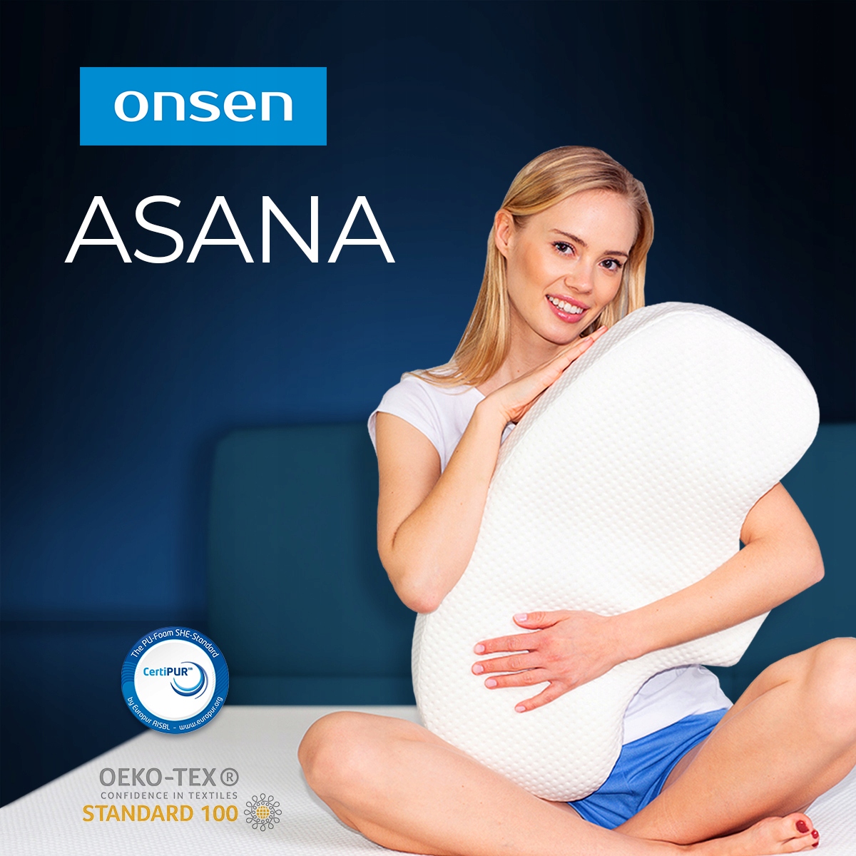 ONSEN® пропонує ортопедичну подушку Asana в одному універсальному розмірі.