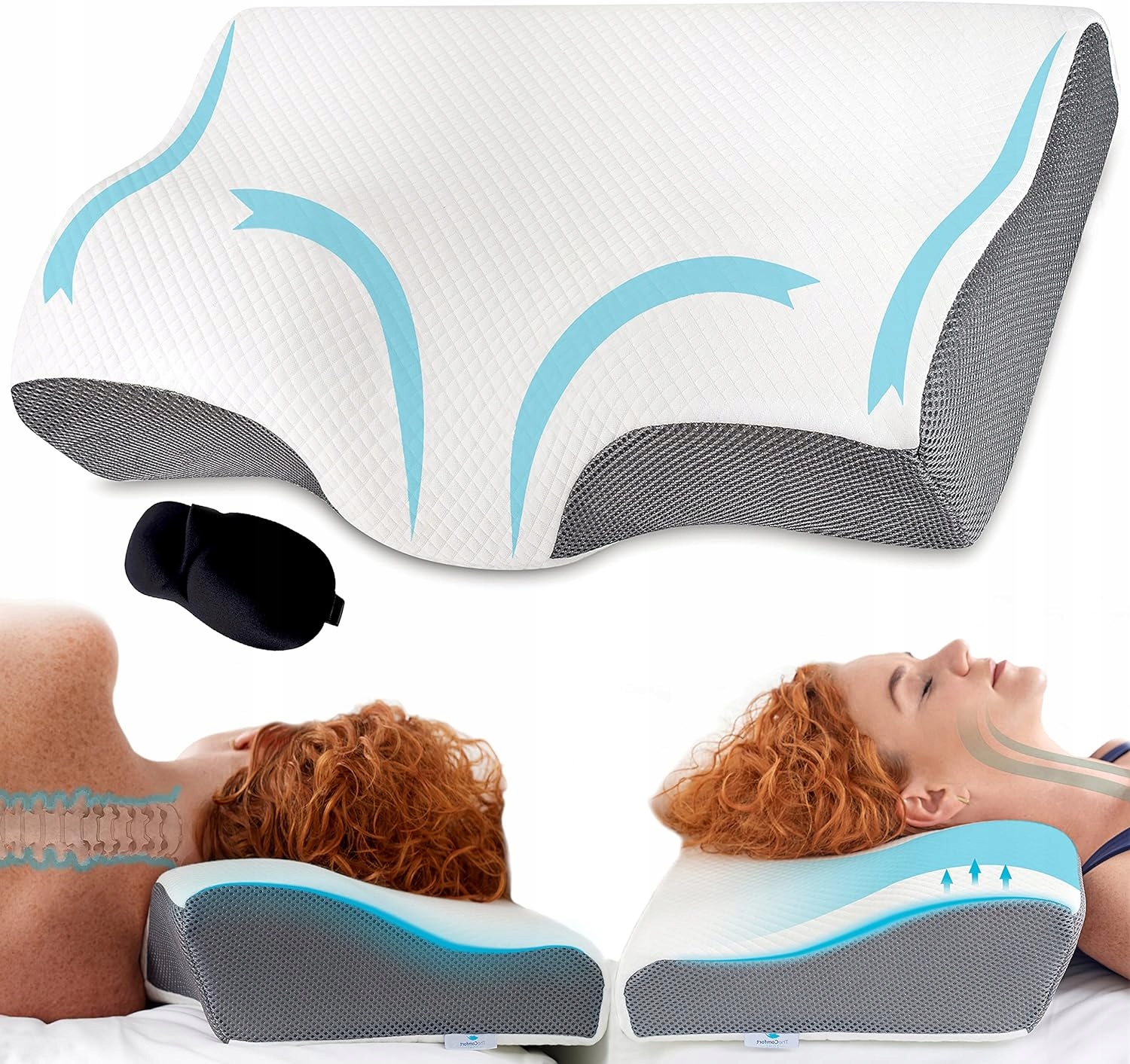 ОРТОПЕДИЧНА ПОДУШКА ДЛЯ ГОЛОВИ З ПІНОЮ З ПАМ'ЯТТЮ, ПРОФІЛЬОВАНА + ВІЛЬНА ЗОНА КОМФОРТУ