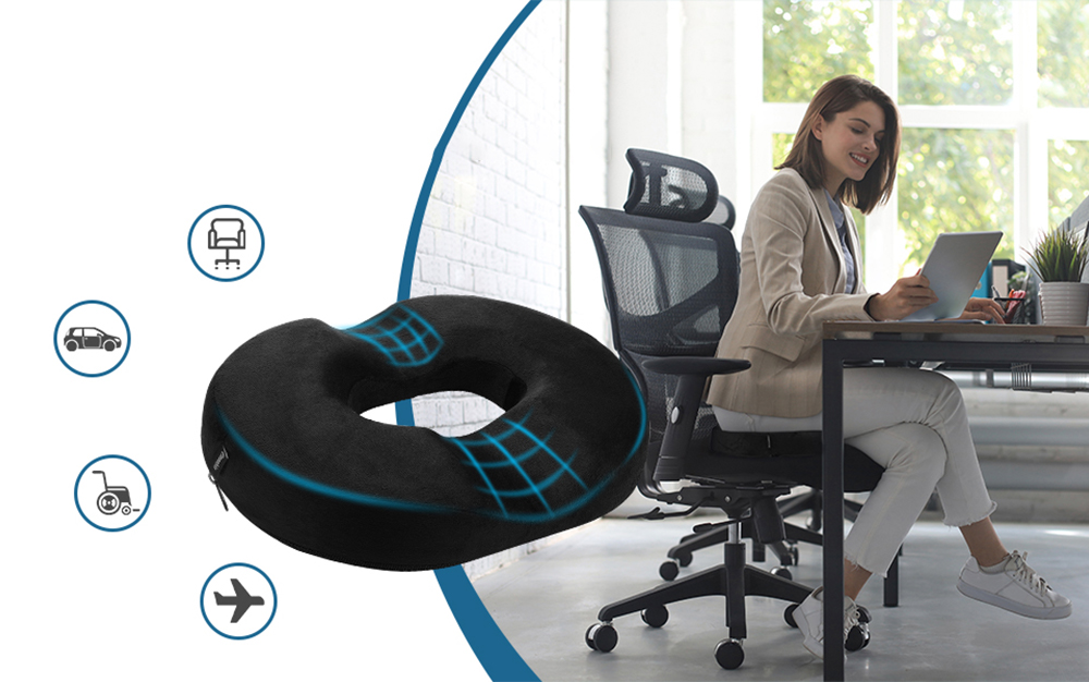 Подушка підходить для більшості офісних стільців. Контурна кільцеподібна конструкція дозволяє правильно розподілити вагу, уникаючи стиснення. Нековзаюча підкладка цієї ортопедичної подушки сидіння допоможе утримати її на місці.