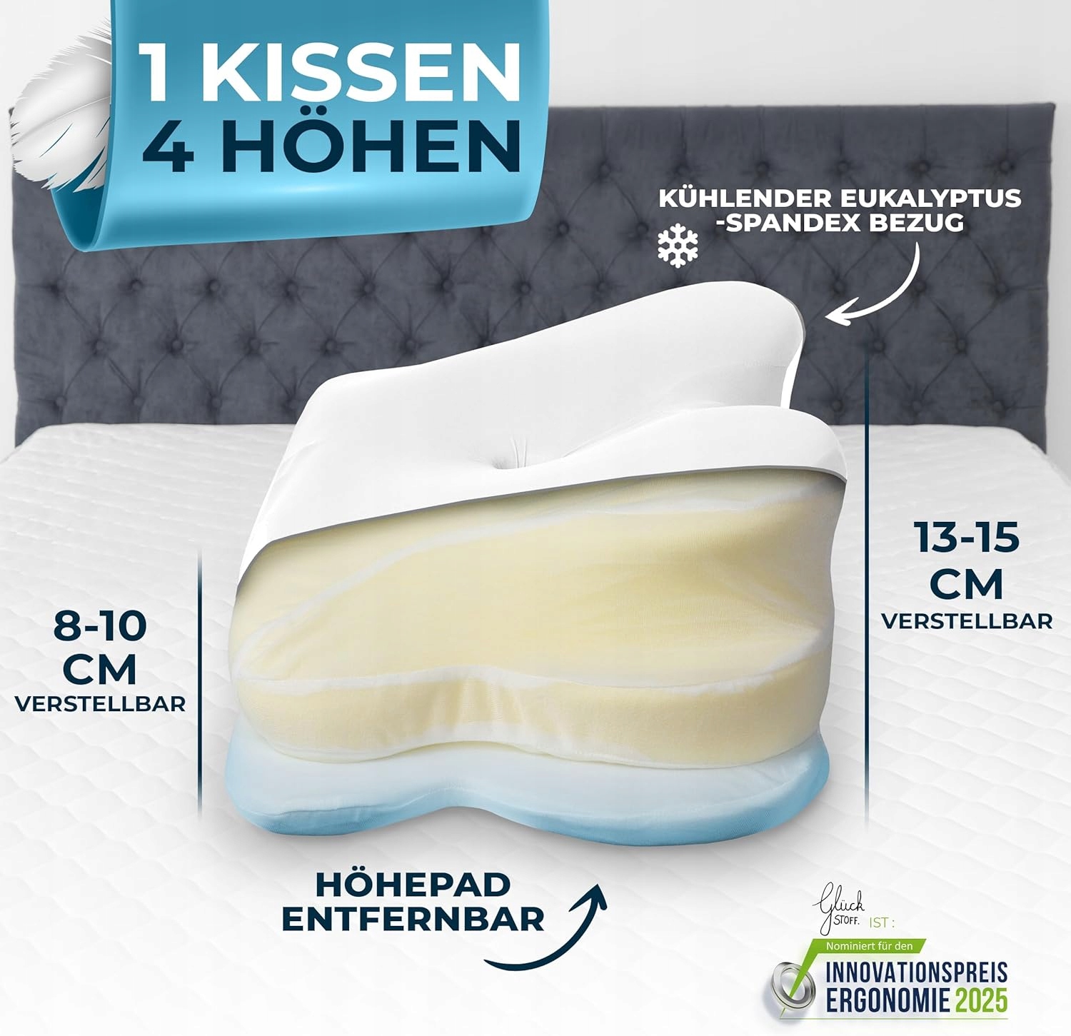 ✔ Велика ємність - в елегантному мішку для джуту у вас завжди є компактна спляча подушка з вами, і ви можете спати комфортно і здорово також під час подорожі. ✔ Неперевершена якість-подушка офіційно сертифікована за Dermatest, відповідає стандартам Öko-Tex і висунута на премію за інноваційну ергономіку 2025 року. Якість, на яку ви можете покластися. ✔ Високоякісна - дихаюча та миття наволочки, виготовлена з природного евкаліптового волокна та спандексу, забезпечує приємну атмосферу для сну влітку та зими. ✔ Висока висоти та твердість класу 1 - завдяки регульованій висоті та твердій та піні з формою форми подушки, ідеально адаптується до будь -якого положення сну - незалежно від того, спите ви на животі, спині чи збоку. ✔ Подушка була розроблена разом з ортопедом у Німеччині і ідеально підходить для болю в шиї та спині, хропіння та проблеми з диханням під час сну.