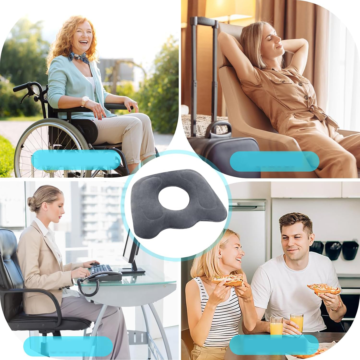 - ✔- Подушка має ергономічну форму пончика, щоб зменшити тиск на порожнину та тазове оточення, зменшуючи дискомфорт і біль, спричинений довгим періодом сидіння.