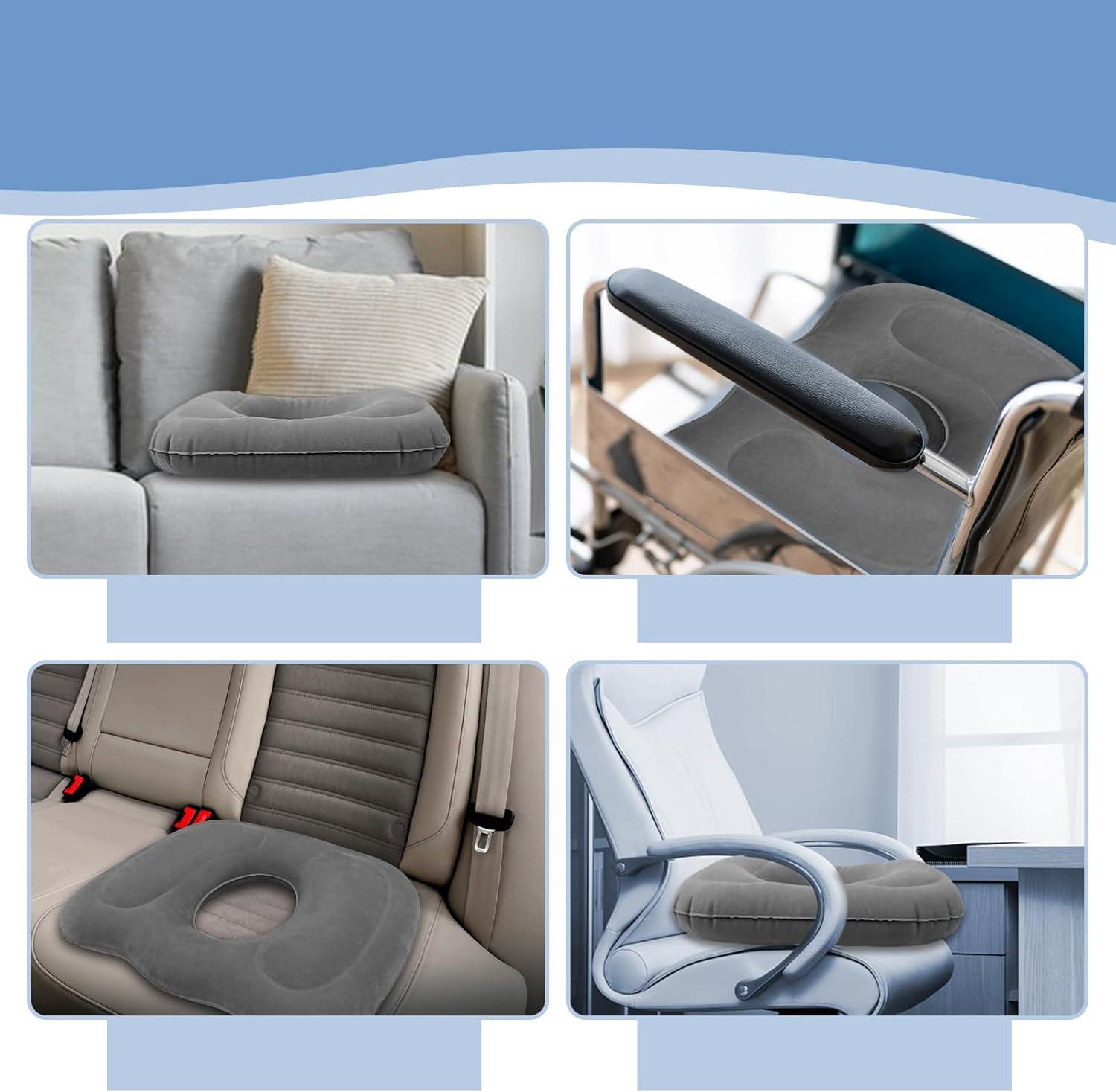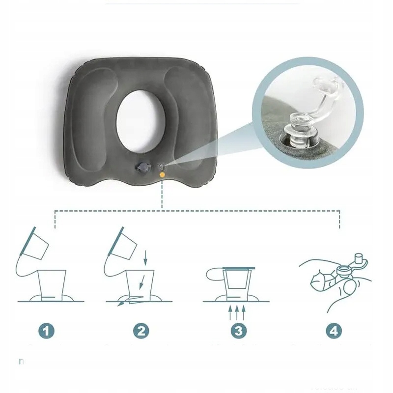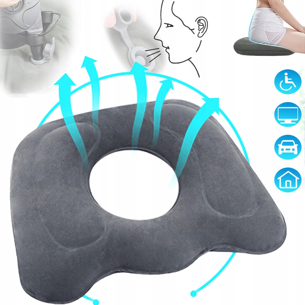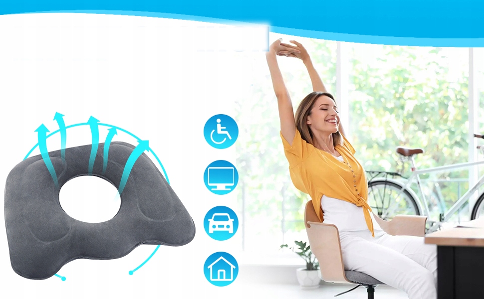 - ✔- Подушка має ергономічну форму пончика, щоб зменшити тиск на порожнину та тазове оточення, зменшуючи дискомфорт і біль, спричинений довгим періодом сидіння.