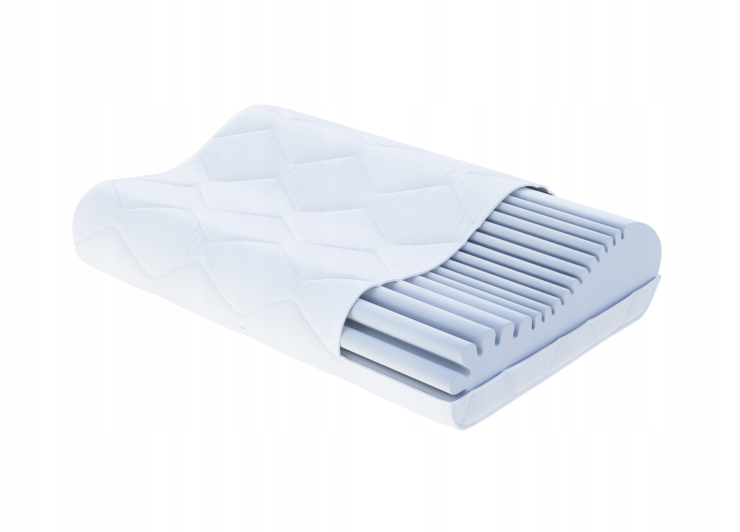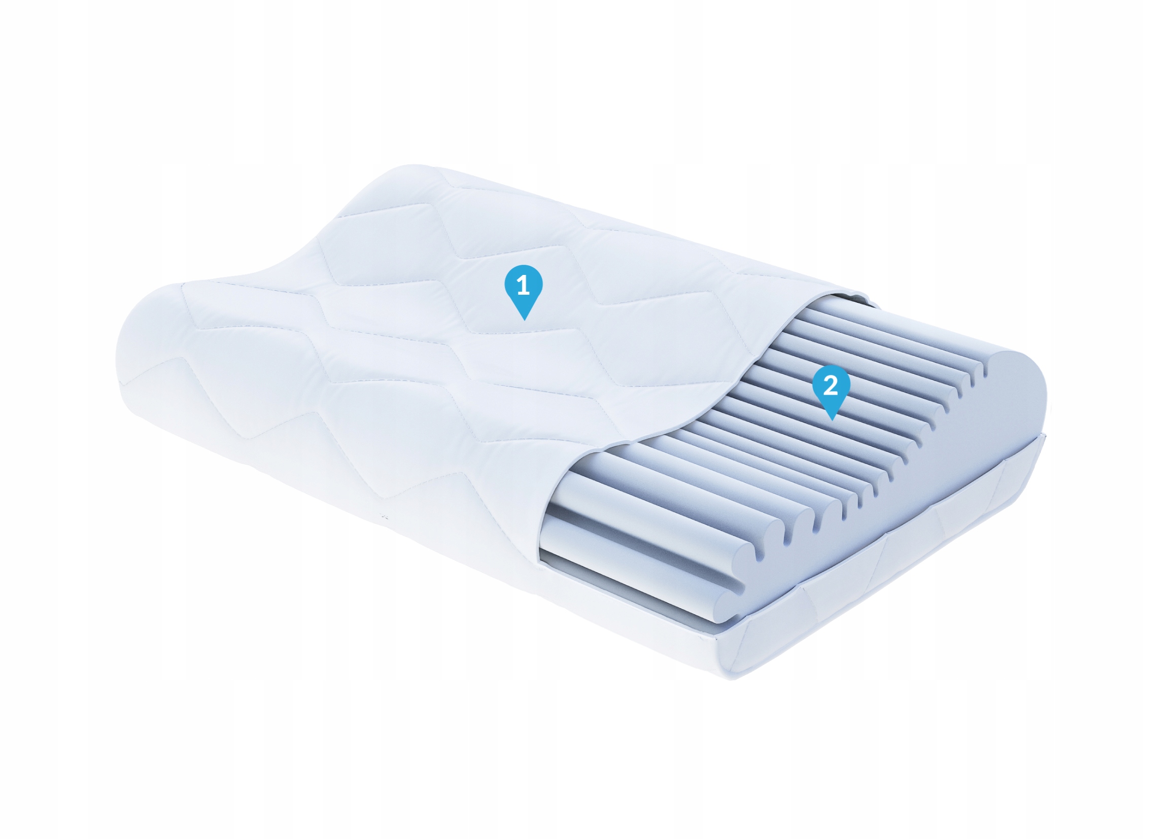 Подушка оптимально адаптується до форми тіла завдяки спеціальному профілю (дві висоти), що дозволяє використовувати її незалежно від того, як ви спите. Крім того, вставка виготовлена зі спеціальної термопластичної піни, яка реагує на тиск і температуру тіла, забезпечуючи ідеальну підтримку для голови і шиї. Має ортопедичні властивості. Особливо рекомендується для людей, які хочуть прокидатися без болю в шиї.