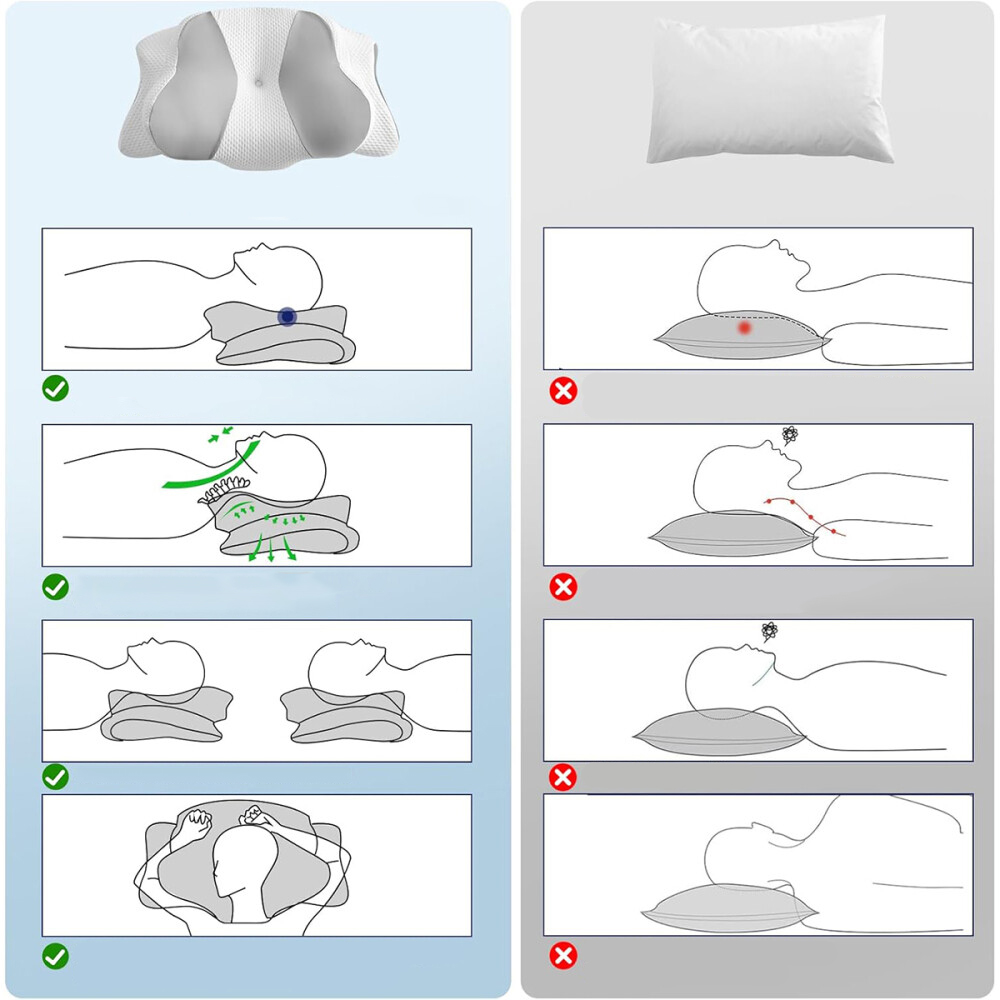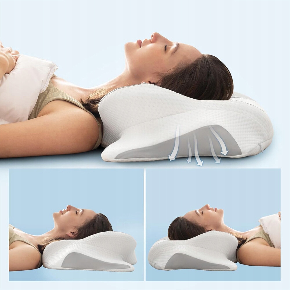 ➸Будь-яка висота: дизайн ортопедичної подушки у формі метелика створює дві сторони з різною висотою. Вища сторона забезпечує кращу підтримку голови та шийного відділу хребта, зберігаючи шию на одній лінії з тілом. Нижня сторона адаптується до природних вигинів тіла.