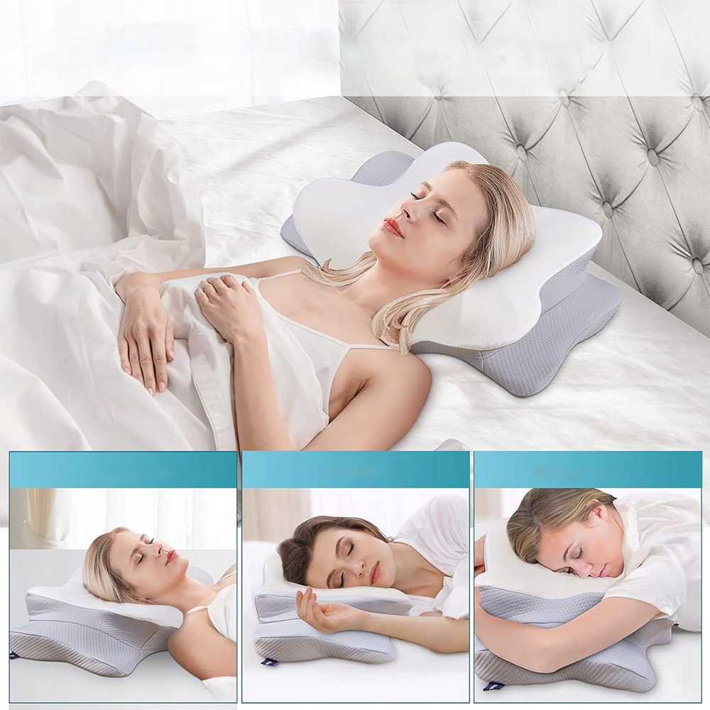 -Подушка для сну збоку має двошарову високоякісну подушкову подушку, яка м'яка і розтягується добре і скорочується разом з подушкою.