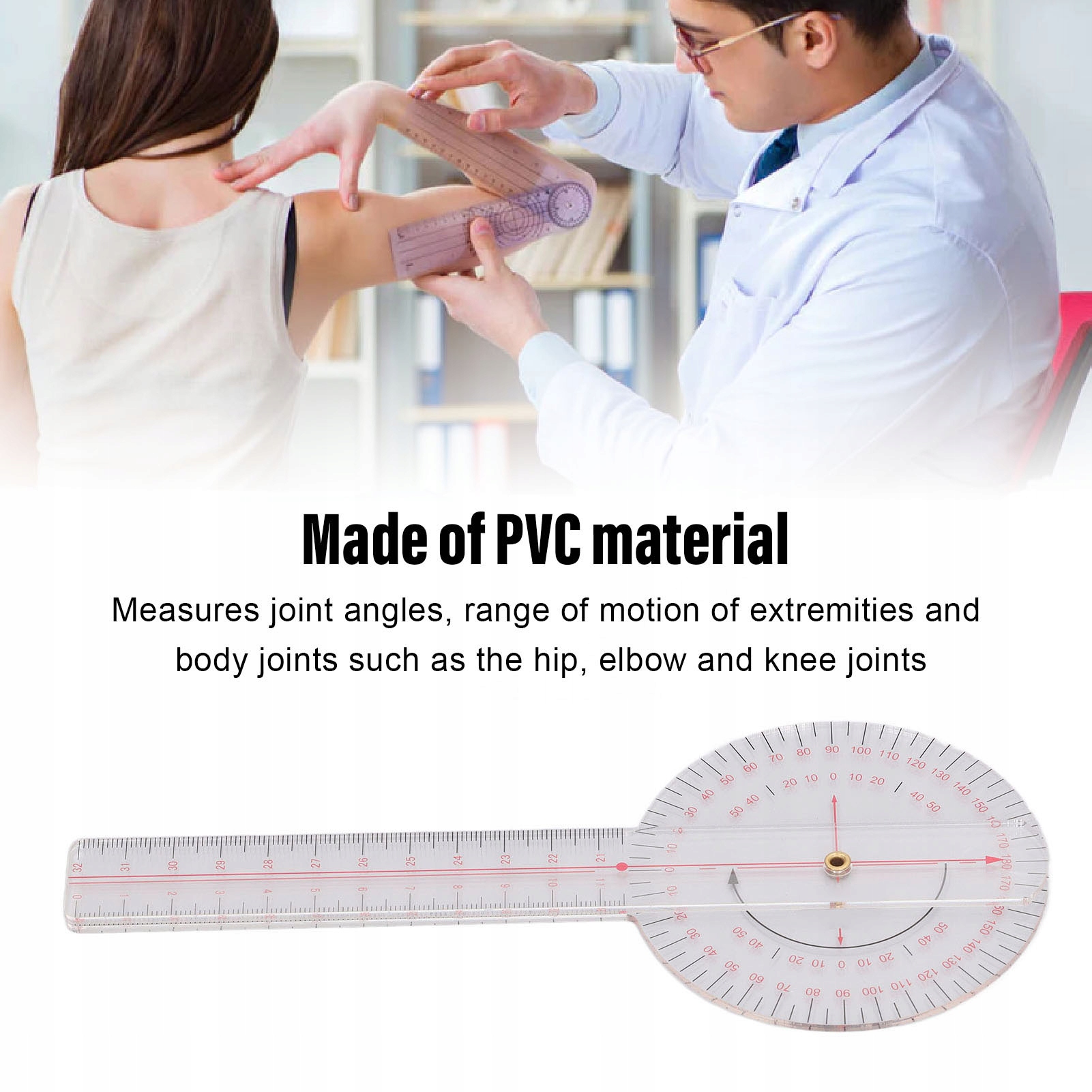 та прозорою структурою, яку легко читати та вимірювати. 5. Матеріал ПВХ: Цей ортопедичний гоніометр виготовлений з ПВХ -матеріалу з чудовою майстерністю, яку можна використовувати протягом тривалого часу.