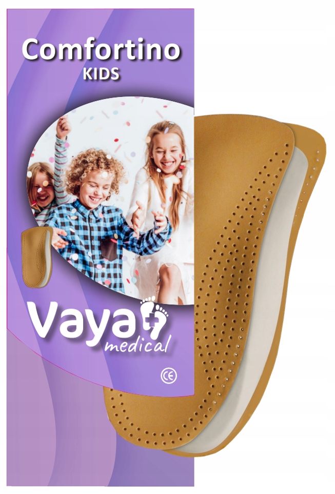 Vaya Comfortino - це дитячі ортопедичні устілки типу ¾ для стоп з плоскостопістю > і вальгусна. Ключовим елементом устілки Vaya Comfortino є нижній шар ErgoDyn з натурального латексу, який відповідає за супінацію і відповідає за правильне розташування п'яти<. /b>. Додатково в устілку вбудована пелота, що підтримує поперечний звід, що забезпечує достатню підтримку стопи в передній частині, і клин, що підтримує поздовжню арка, яка підтримує стопу в області плеснової кістки, надаючи стопі дитини комфорт і гнучкість під час ходьби.