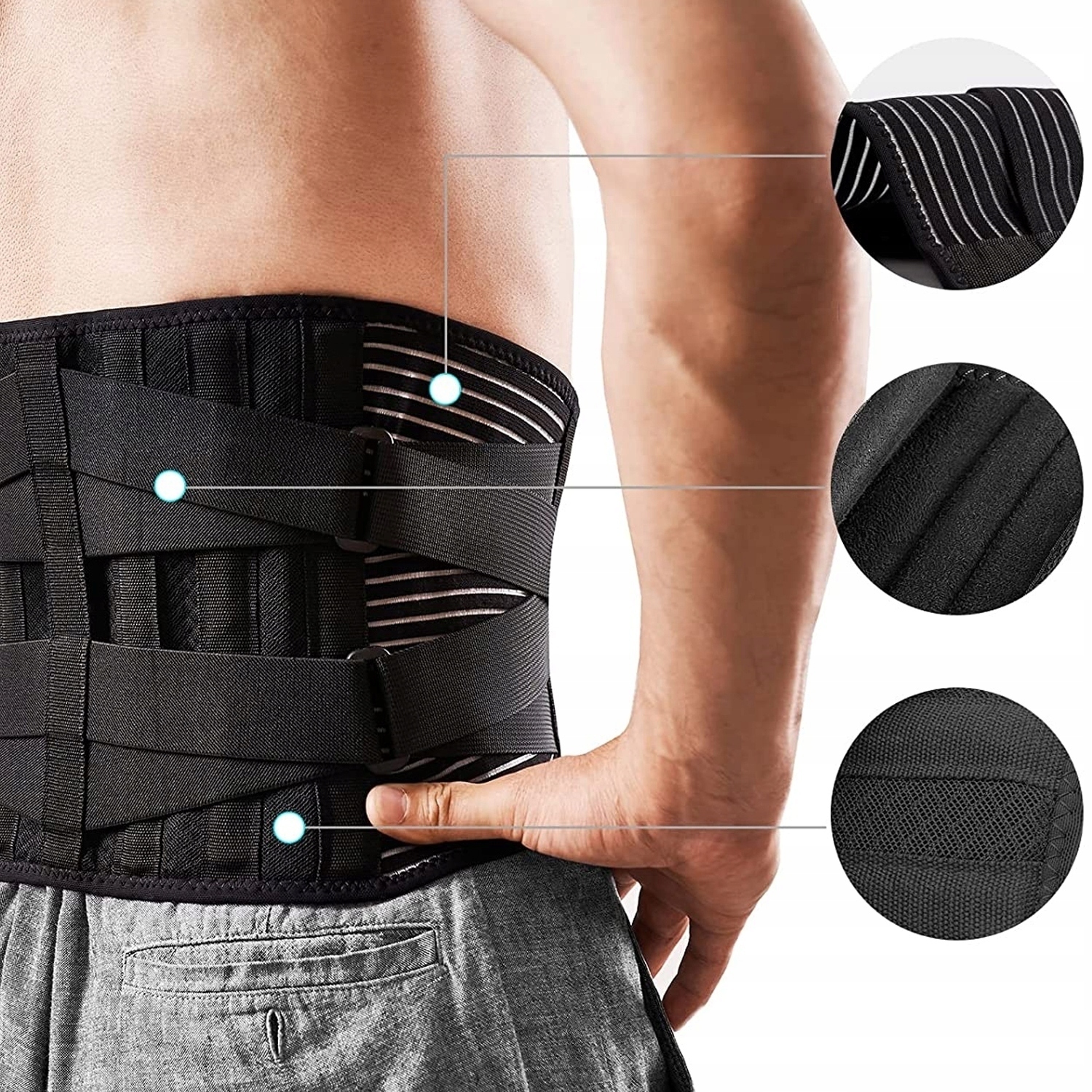 ✅Забезпечує поперекову та черевну підтримку для людей, які страждають від помірного та сильного болю в спині, м’язового болю, травм м’язів, розтягнення живота та травм.