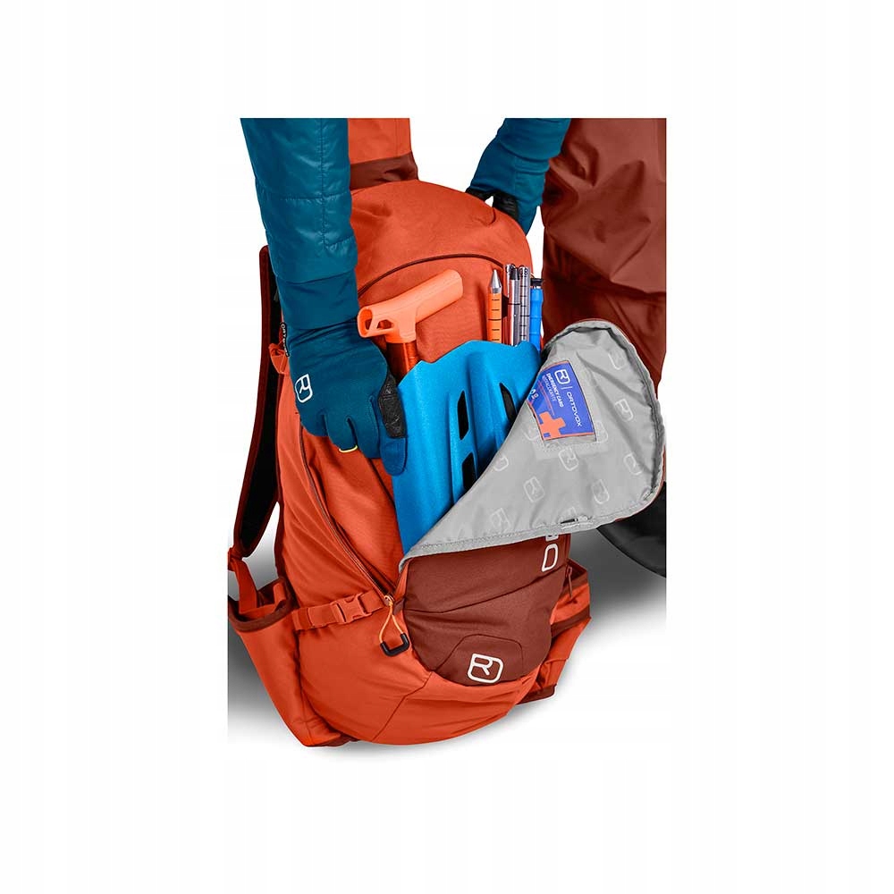 Ortovox Tour Rider 30 важить лише 990 г. Він оснащений багатьма важливими функціями, такими як доступ до основного відділення зверху та ззаду, сумісність із системами гідратації, можливість прикріпити лижі чи сноуборди, льодоруб чи палиці. В основному відділенні є невелика кишеня на блискавці, ідеальне місце для найцінніших речей. Спереду розташована кишеня, призначена для транспортування лавини "АВС". Спереду є кишеня на блискавці, яка ідеально підходить для транспортування карти, а в самому верху є невелика кишеня з ключницею. Рюкзак також має тримач для шолома та свисток, вбудований у пряжку нагрудного ременя. З боків є компресійні ремені, які також можна використовувати для кріплення лиж. Пояс на стегнах оснащений кишенею на блискавці. Завдяки яскравій обробці всередині відділення легше знайти потрібні речі.